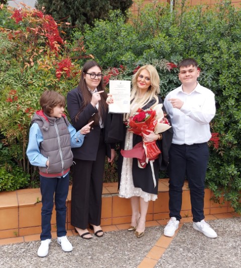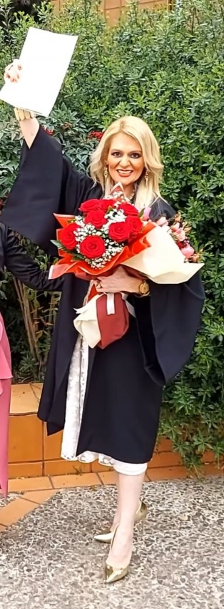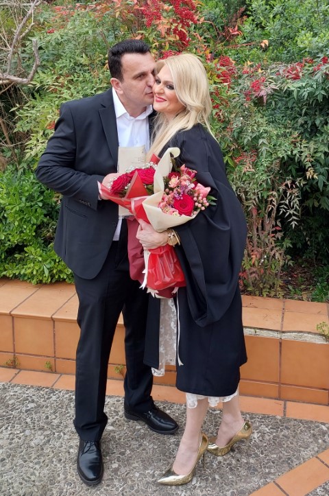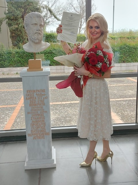 Στην τελετή ορκωμοσίας που πραγματοποιήθηκε την Τρίτη 26 Μαρτίου στην κατάμεστη αίθουσα τελετών της Ιατρικής Σχολής σε κλίμα ιδιαίτερης συγκινησιακής φόρτισης, το πτυχίο της παρέλαβε η επιστήμονας, παρουσία της οικογένειάς της, αγαπημένων συγγενών και φίλων.