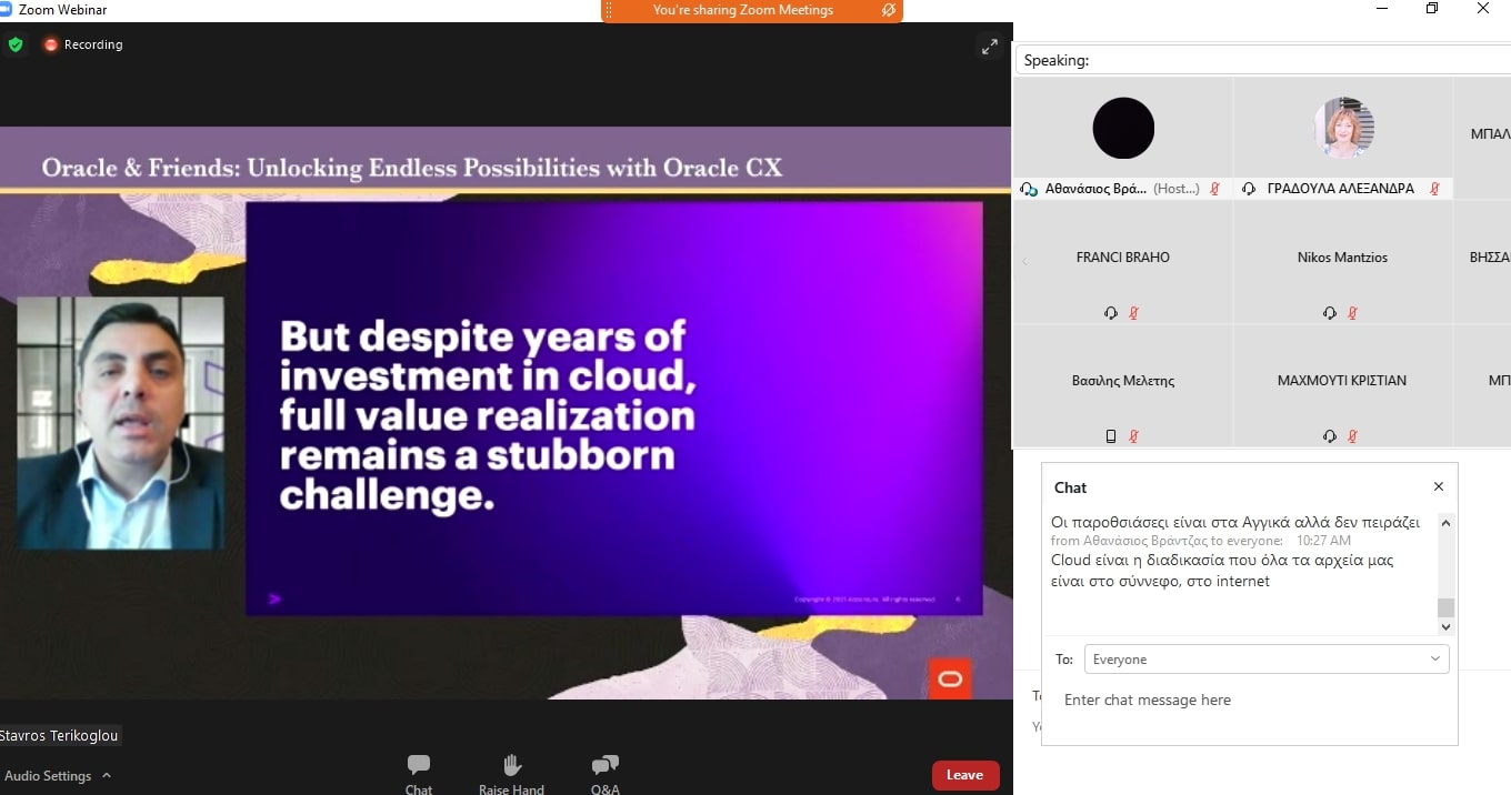 Στο πλαίσιο του μαθήματος της Πληροφορικής και Τεχνολογίας Γυμνασίου, μαθητές/τριες του 5ου Γυμνασίου Τρικάλων είχαν την ευκαιρία να συμμετάσχουν την Τρίτη 23 Μαρτίου σε webinar* που διοργάνωσε η Oracle με θέμα «πώς τα δεδομένα διαδραματίζουν δραματικό ρόλο στην κατανόηση των πελατών και πώς οι μεγάλες επιχειρήσεις έχουν μεταμορφώσει την λειτουργία τους προκειμένου να καινοτομήσουν και να προσφέρουν.»