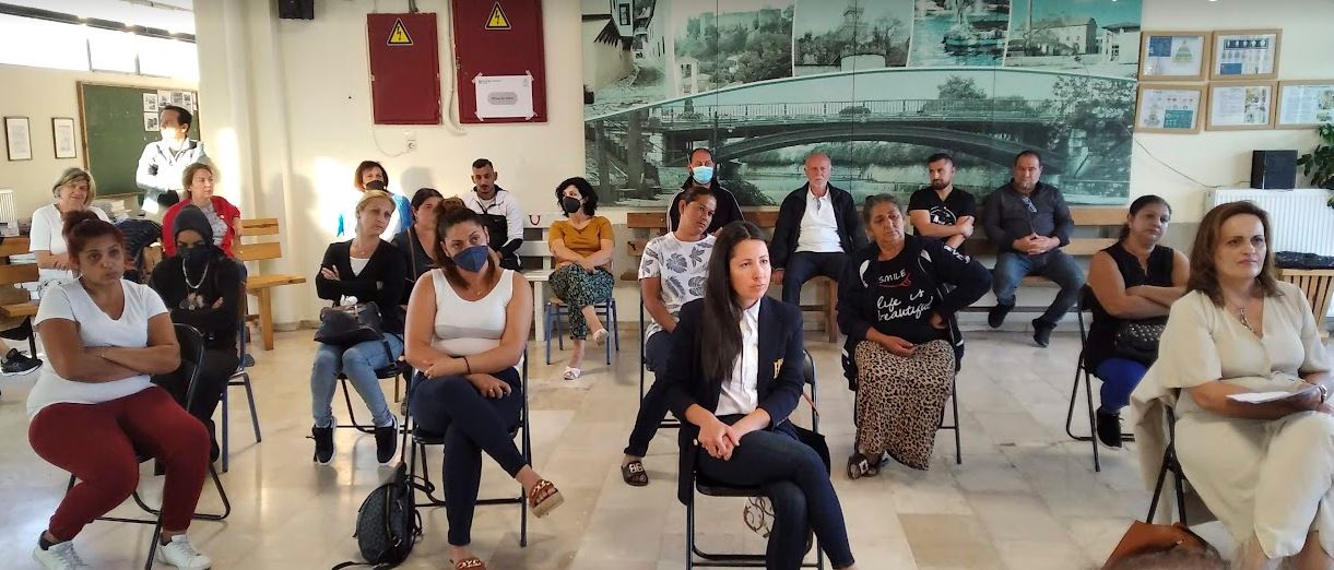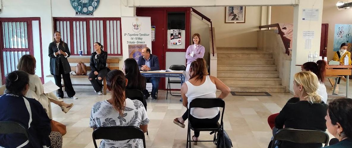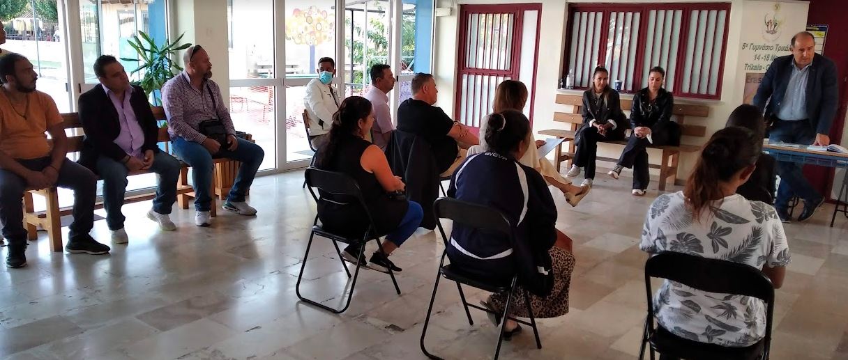 Σε συνέχεια της εθιμοτυπικής συνάντησης που έγινε στο γραφείο του Διευθυντή της Δ.Ε Τρικάλων, Δρ Αλέξανδρου Γ. Καπανιάρη πραγματοποιήθηκε εκ νέου συνάντηση την Πέμπτη 22 Σεπτεμβρίου στο 5ο Γυμνάσιο Τρικάλων. Συμμετείχαν ο Αντιδήμαρχος Πολιτισμού, Αθλητισμού και Παιδείας κ. Μιχάλης Λάππας, υπεύθυνοι δομών του Δήμου Τρικκαίων, η προϊσταμένη της ΤΟ.Μ.Υ. Τρικάλων κα Ευαγγελία Καλκάνη, η επισκέπτρια υγείας κα Σοφία Πρεβεδουράκη, η προϊσταμένη του τμήματος Κοινωνικών, Πολιτικών και Δημόσιας Υγείας της Διεύθυνσης Κοινωνικής Μέριμνας του Δήμου κα Βέρα Ντάκου και η Διευθύντρια του 5ου Γυμνασίου κα Φανή Σμιξιώτη. Στη συνάντηση συμμετείχαν γονείς και κηδεμόνες μαθητών/τριών ΡΟΜΑ, το προεδρείο του Συλλόγου Γονέων και Κηδεμόνων και εκπαιδευτικοί του σχολείου. Επιπλέον, παρευρέθηκαν οι εκπρόσωποι των τριών Συλλόγων Ρομά Τρικάλων και συγκεκριμένα οι πρόεδροι των δυο συλλόγων Κηπακίου, ο κ. Παρασκευάς Φουντούνας, ο κ. Ανδρέας Μπαντής, και ο αντιπρόεδρος κ. Διονύσης Πάσσιος, ο πρόεδρος του συλλόγου Πύργου και Καλαμακίου κ. Μανώλης Τσάτσος και ο γραμματέας κ. Ανάργυρος Θεοδώρου