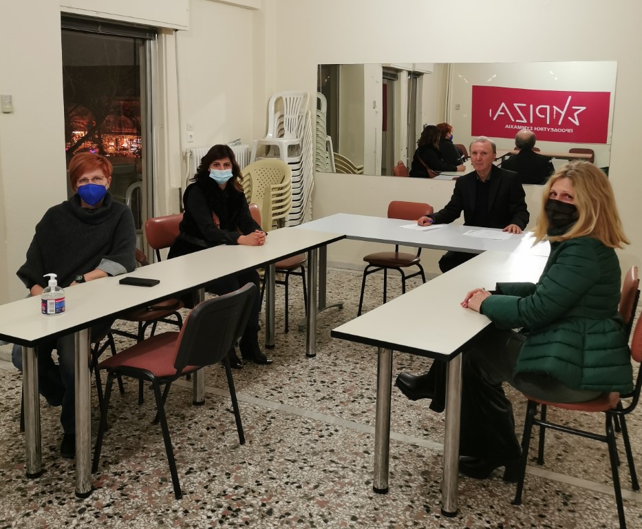 Η συνάντηση με το προεδρείο του Συλλόγου Εργαζομένων Πρωτοβάθμιας Φροντίδας Νομού Τρικάλων την 21/2/2022 ήταν εξαιρετικά χρήσιμη. Το προεδρείο έκανε αναλυτική ενημέρωση για τον πολύτιμο ρόλο, το έργο και τη σημερινή τραγική υποστελέχωση του Κέντρου Υγείας Τρικάλων, επισήμανε τους κινδύνους κατάρρευσης της λειτουργίας του και παρουσίασε τις προτάσεις για τη στήριξη και αναβάθμισή του θέτοντας και προτεραιότητες για τις προσλήψεις γιατρών που πρέπει να γίνουν άμεσα. Η συζήτηση επικέντρωσε στις παρεμβάσεις που πρέπει να γίνουν για να υπάρξουν άμεσες βελτιώσεις, καθώς το Κέντρο Υγείας Τρικάλων εξυπηρετεί ταυτόχρονα με τα σημαντικά καθήκοντά του και τις συνεχιζόμενες ανάγκες αντιμετώπισης της πανδημίας και εμβολιασμών.