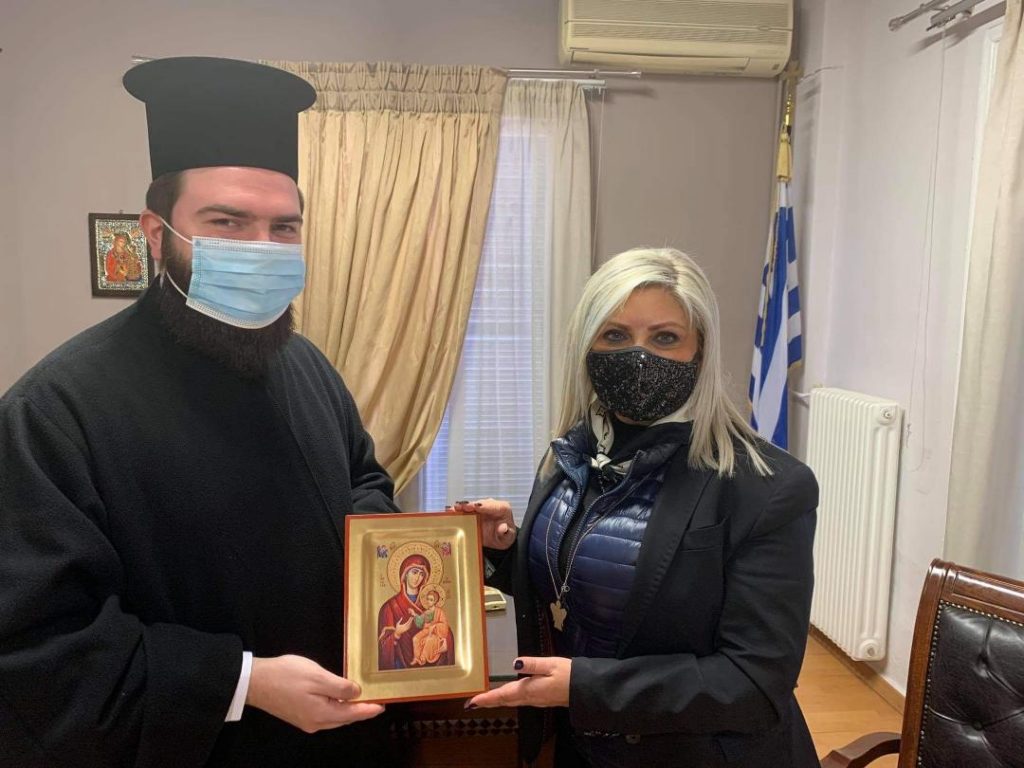 Στο πλαίσιο εθιμοτυπικής επίσκεψης πραγματοποιήθηκε συνάντηση την Παρασκευή 26-02-2021 του Πανοσιολογιώτατου Αρχιμανδρίτη και Πρωτοσύγκελλου της Ιεράς Μητρόπολης Τρίκκης & Σταγών κ. Αλεξίου Κανίνα με τη Διευθύντρια Δ.Ε. Τρικάλων κα. Ελένη – Μαρίνα Ξυνοπούλου στο γραφείο της.