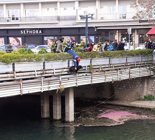 Ένας σκύλος εγκλωβίστηκε πίσω από τη γέφυρα του Ασκληπιού και έστεκε εκεί για ώρες. Ειδοποιήθηκε η Πυροσβεστική, άντρες της οποίας κατέβαλαν φιλότιμες προσπάθειες να τον διασώσουν και να τον φέρουν πάνω στη γέφυρα. Μάταια, καθώς αυτός αντιστεκόταν. Τελικά… βρήκε το θάρρος, ισορρόπησε και… βγήκε στη στεριά. Δείτε τα χαρακτηριστικά βίντεο του trikalavoice.gr: