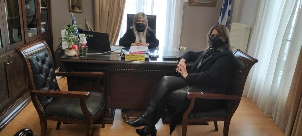 Τη Διευθύντρια της Δευτεροβάθμιας Εκπαίδευσης Τρικάλων, κα. Ελένη – Μαρίνα Ξυνοπούλου, επισκέφθηκε την Τρίτη 2 Μάρτιου 2022, η Θεματική Αντιπεριφερειάρχης Δημόσιας Υγείας & Πρόνοιας Θεσσαλίας κ. Νάτσινα Δήμητρα.