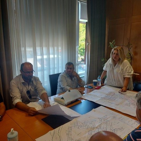 Συζητήθηκε το θέμα που αφορά το έργο της κατασκευής δικτύων άρδευσης του Νομού Τρικάλων μεταξύ αυτών και του Δήμου Πύλης και δη τις Τοπικές Κοινότητες Γόμφων, Παλαιομονάστηρου, Λυγαριάς, Μουριάς, Πηγής και Δροσερού, αντικαθιστώντας τα παλιά επιφανειακά δίκτυα με νέα δίκτυα PVC που θα εξυπηρετήσουν τις ανάγκες και θα βελτιώσουν τις συνθήκες άρδευσης στις καλλιέργειες των αγροκτημάτων τους.