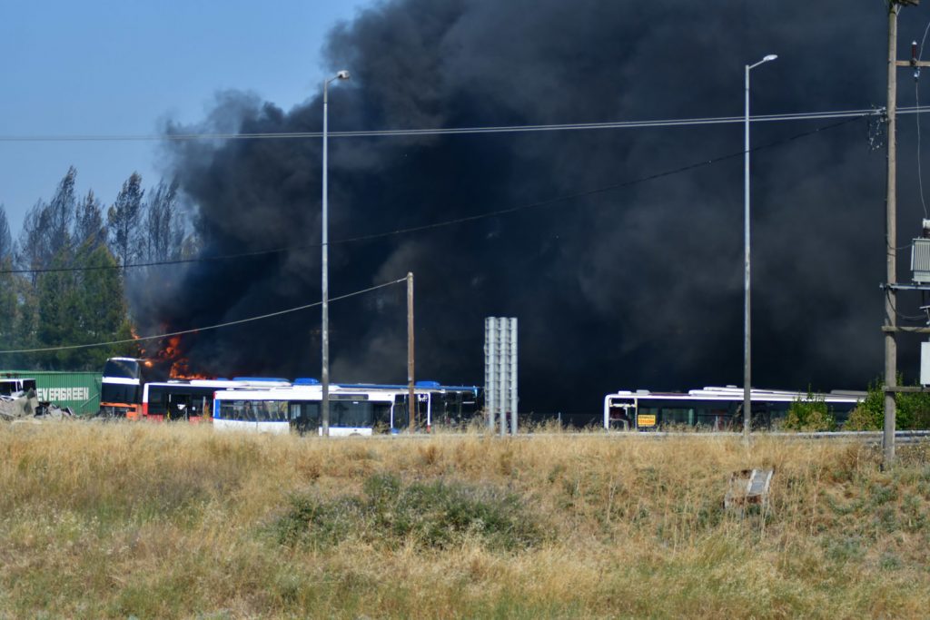 Συνεχίζει να καίει η πυρκαγιά που ξέσπασε κοντά στον Πλατύκαμπο, κυρίως απέναντι από τον σταθμό υπεραστικών λεωφορείων «Νιαβής», ενώ η φωτιά έχει κάψει και βαριά οχήματα σε πάρκινγκ.
