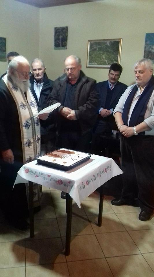 Αμέσως μετά, όλοι μαζί, μια οικογένεια έκοψαν την Πρωτοχρονιάτικη πίτα τους στο καφενείο του χωριού με τον πρόεδρο Παναγιώτη Βλαχοδήμο να εύχεται υγεία σε όλους «να είμαστε καλά και να ανταμώνουμε εδώ».