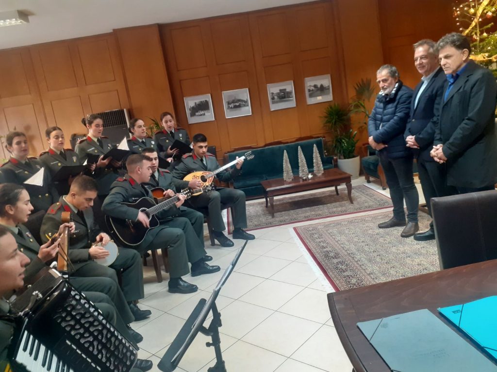 Στην καθιερωμένη επίσκεψή τους τις γιορτινές μέρες των Χριστουγέννων και σε ένα ιδιαίτερα ευχάριστο κλίμα, οι χορωδοί, αλλά και οι μουσικοί της Σχολής, έφεραν γιορτινές νότες στο γραφείο του Αντιπεριφερειάρχη, με το παρών να δίνουν και οι περιφερειακοί σύμβουλοι Χρήστος Γακόπουλος και Ντίνος Μπάρδας.