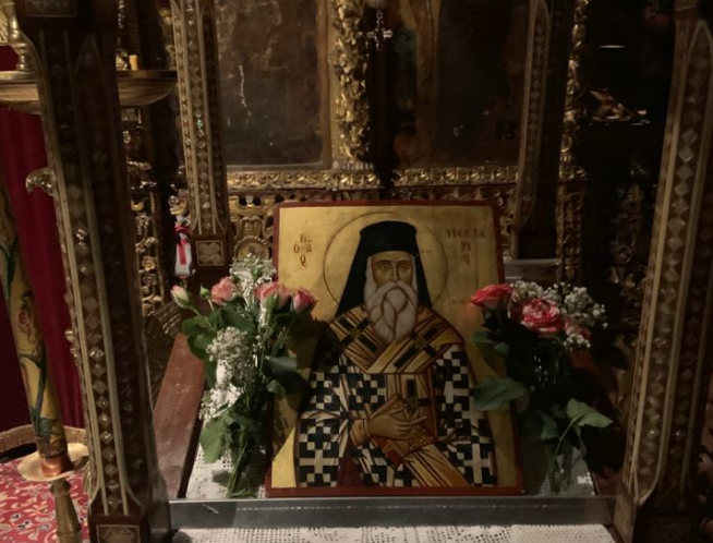 Το βράδυ της Παρασκευής, παραμονή της εορτής του σύγχρονου Αγίου μας, τελέστηκε κατά την παράδοση ο πανηγυρικός Εσπερινός και η κατανυκτική Ιερά Αγρυπνία, ιερουργούντος του γέροντος Νεκταρίου και συμμετοχή του πρωτοπρεσβύτερου της καθ’ ημάς Μητροπόλεως, πατρός Γεωργίου Γραδούλα.