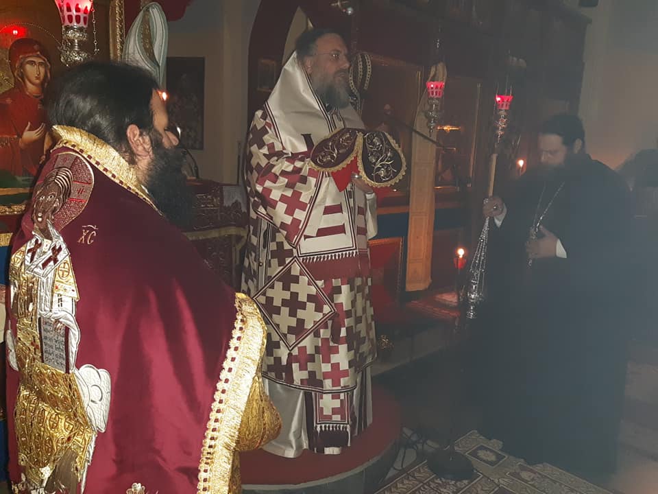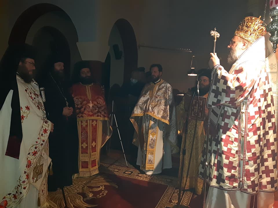 Χθες βράδυ τελέστηκε Εσπερινή Αρχιερατική Θεία Λειτουργία ιερουργούντος του Μητροπολίτου Τρίκκης, Γαρδικίου και Πύλης Χρυσοστόμου. Ο Σεβασμιώτατος εκτός του ότι εξήρε το έργο του Ηγουμένου και νέου κτήτορος της Μονής, χειροθέτησε με το πέρας της Θείας Λειτουργίας τον Αρχιμανδρίτη Προκόπιο, κατά σάρκαν αδελφό του γέροντος, σε Πνευματικό.