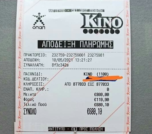 Τρικαλινός είχε έμπνευση μέσα στο Σαββατοκύριακο, έριξε ένα 50λεπτο στο ΚΙΝΟ και έφυγε με… 680 € από το πρακτορείο ΟΠΑΠ του Στέφανου Πιάζα. Ωραίος…