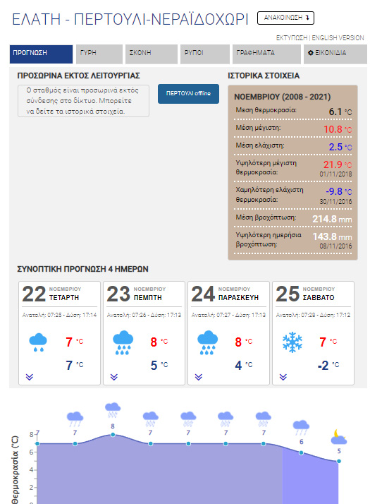 Τα πρώτα χιόνια αναμένονται το ερχόμενο Σαββατοκύριακο σε Ελάτη-Περτούλι. Σύμφωνα με την πρόγνωση της ΕΜΥ, μέσω του meteo.gr η χιονόπτωση αναμένεται από το πρωί του Σαββάτου, όχι με μεγάλη ένταση ωστόσο.