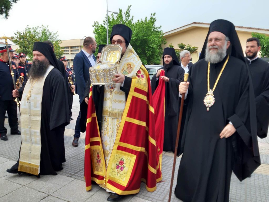 Το απόγευμα της Τρίτης, όπως κατέγραψε το trikalavoice.gr, έγινε η υποδοχή της Τιμίας Κάρας του Αγίου η οποία φυλάσσεται στην Ιερά Μονή Βαρλαάμ των Μετεώρων και την οποία κόμισε ο αδελφός αυτής, ιερομόναχος Βαρλαάμ, στον φερώνυμο Ιερό Ναό Αγίου Νικολάου εκ Μετσόβου στην Πράσινη Γωνιά. Εκεί τελέστηκε Μέγας Αρχιερατικός Εσπερινός χοροστατούντος του αγίου Δορυλαίου Δαμασκηνού, συγχοροστατούντων του Μητροπολίτου Λαγκαδά Πλάτωνος, του κυριάρχου Μητροπολίτου Τρίκκης , Γαρδικίου και Πύλης Χρυσοστόμου, και τη συμμετοχή δεκάδων ιερέων της Μητροπόλεως. Ακολούθησε η λιτάνευση της Τιμίας Κάρας του Αγίου επί της οδού Καλαμπάκας. Μετά το πέρας του Εσπερινού ο φιλακόλουθος και ευσεβής εφημέριος του Ναού, Πρωτοπρεσβύτερος Δημήτριος Κυρίτσης, προσέφερε παραδοσιακή φιλοξενία για όλους.