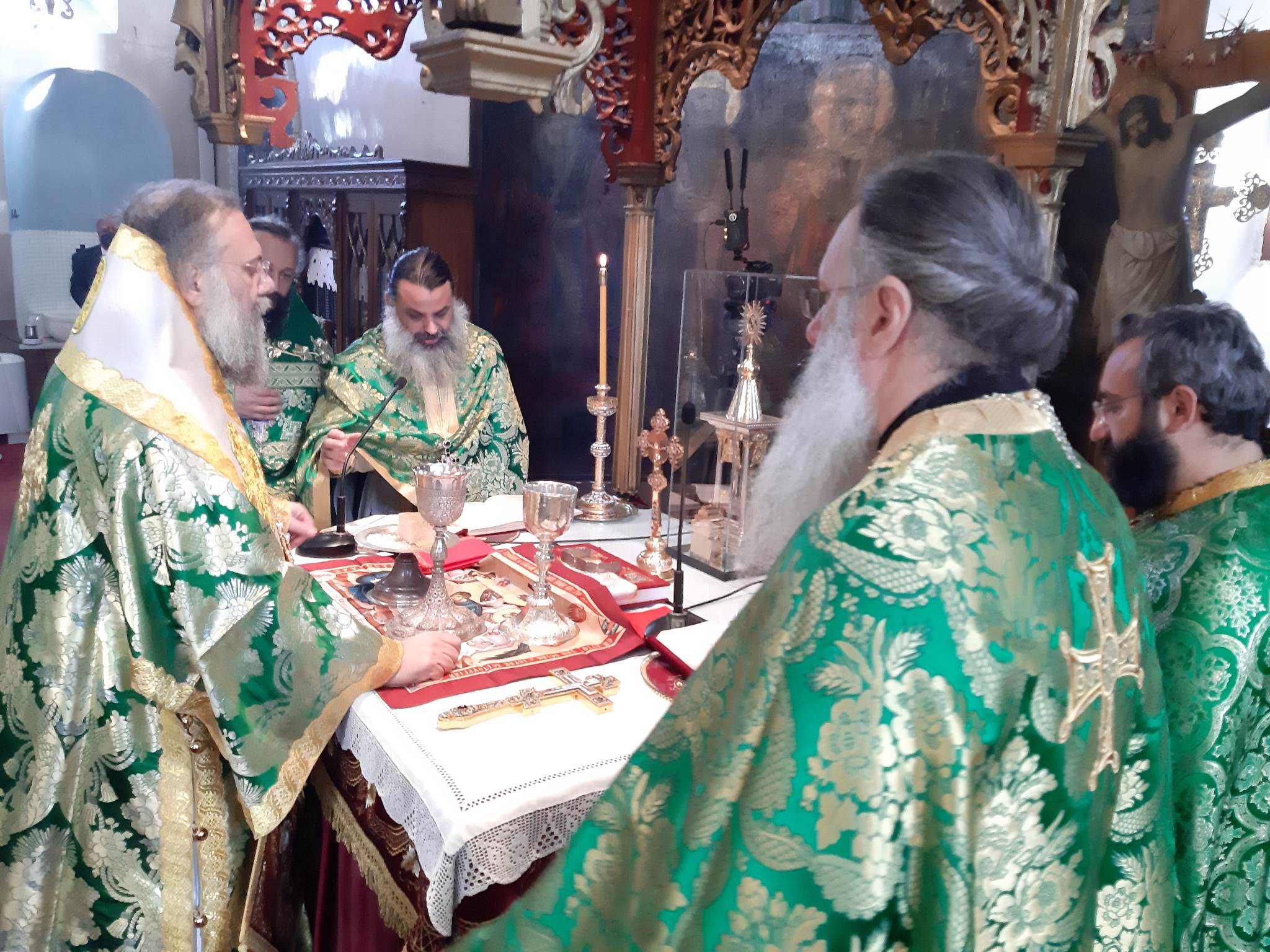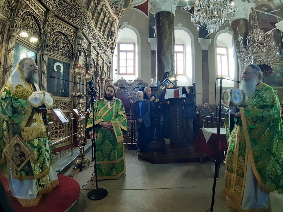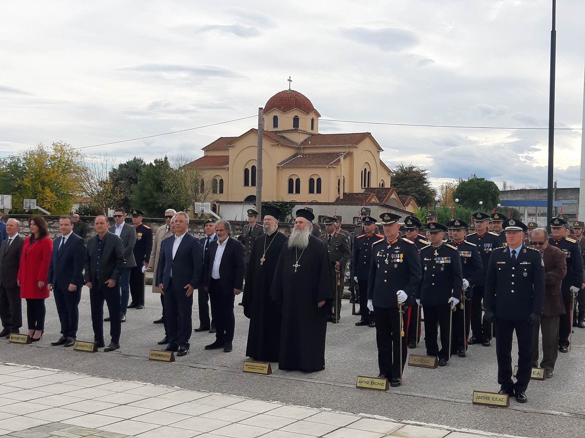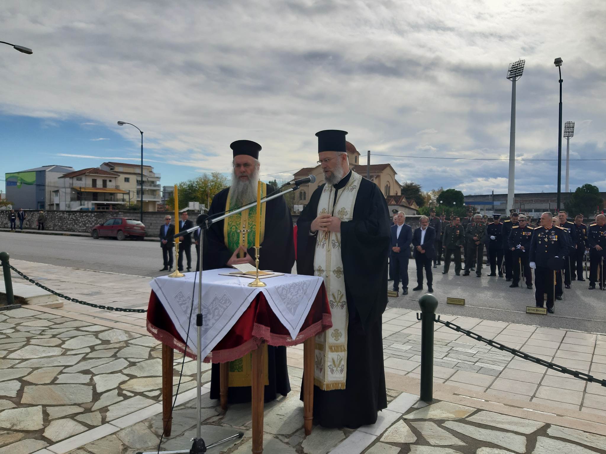 Όπως κατέγραψε το trikalavoice.gr το πρωί της Δευτέρας τελέστηκε στον ιστορικό Μητροπολιτικό Ναό της πόλεως, αυτόν της Παναγίας Επισκέψεως, Αρχιερατική Θεία Λειτουργία ιερουργούντος του Μητροπολίτου Τρίκκης, Γαρδικίου και Πύλης Χρυσοστόμου. Ο Σεβασμιώτατος χοροστάτησε και κατά τη Δοξολογία που ακολούθησε παρουσία της πολιτικής και στρατιωτικής ηγεσίας. Ακολούθησε κατάθεση στεφάνων στο Ηρώο της ΣΜΥ.