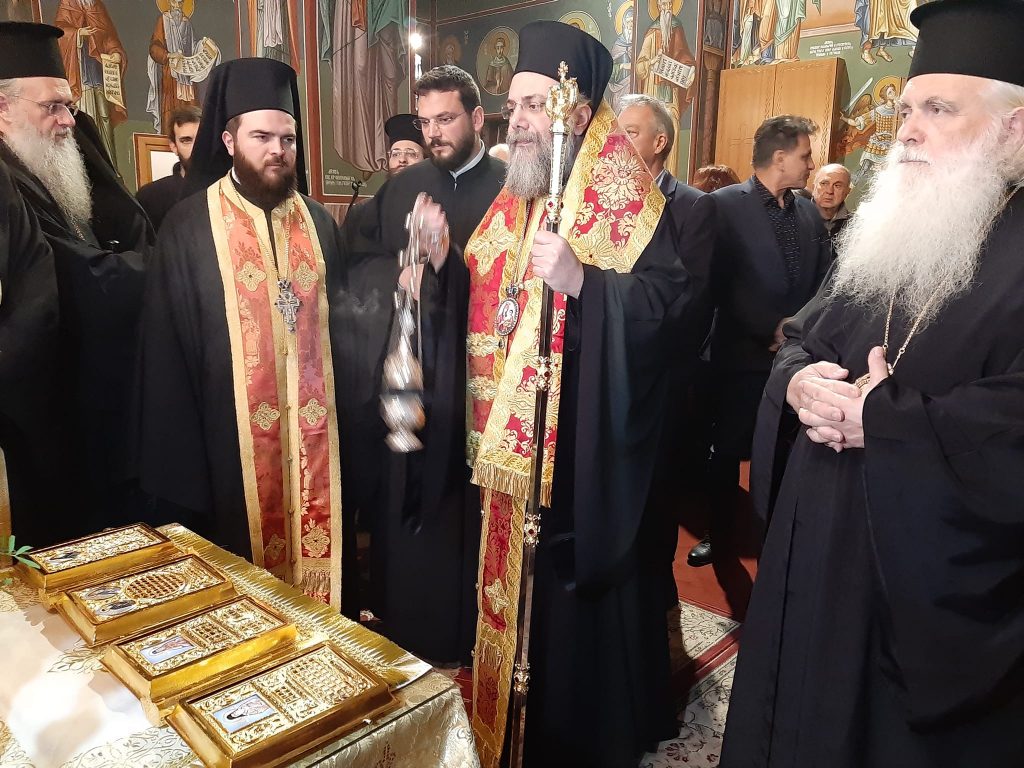 Τα Λείψανα κόμισε ο Μητροπολίτης Αργολίδος Νεκτάριος και έγιναν δεκτά υπό του οικείου Ποιμενάρχου κ. Χρυσοστόμου, κλήρου και λαού. Ακολούθως τελέστηκε παράκληση και με το πέρας αυτής ο κ. Νεκτάριος ομίλησε καταλλήλως στους πιστούς για τους βίους των Αγίων.