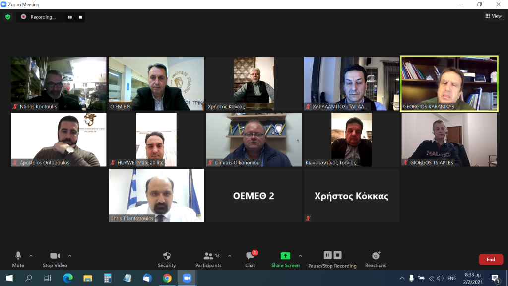 Παρουσία του γενικού γραμματέα του υπουργείου οικονομικών, Χρήστου Τριαντόπουλου και του προέδρου της ΕΣΕΕ, Γιώργου Καρανίκα συνεδρίασε χθες Τρίτη 2/2/2021 το διοικητικό συμβούλιο της Ομοσπονδίας Εμπορίου και Επιχειρηματικότητας Θεσσαλίας.
