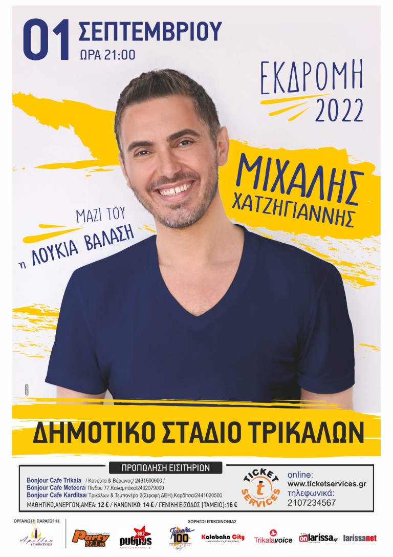 Στο Δημοτικό Στάδιο Τρικάλων,στις 1 Σεπτεμβρίου και ώρα 21:00 με τραγούδια που έχουν χαραχθεί βαθιά στην ψυχή μας , θα μας γεμίσει με όμορφα συναισθήματα, μοναδικές μελωδίες και καλή διάθεση!
