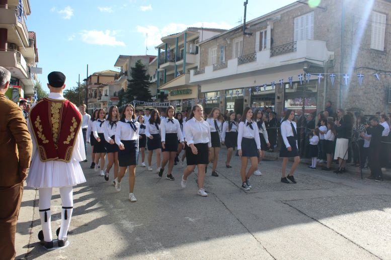 Στην συνέχεια έλαβε χώρα η μεγαλειώδης παρέλαση  της μαθητιώσας νεολαίας της Πύλης, των Πολιτιστικών Συλλόγων και των οχημάτων της Πυροσβεστικής Υπηρεσίας του Πυροσβεστικού Κλιμακίου Πύλης, επί της Οδού Αγίου Βησσαρίωνος (πρώην Ε.Ο. Τρικάλων Άρτας) ενώπιον της εξέδρας των Επισήμων.