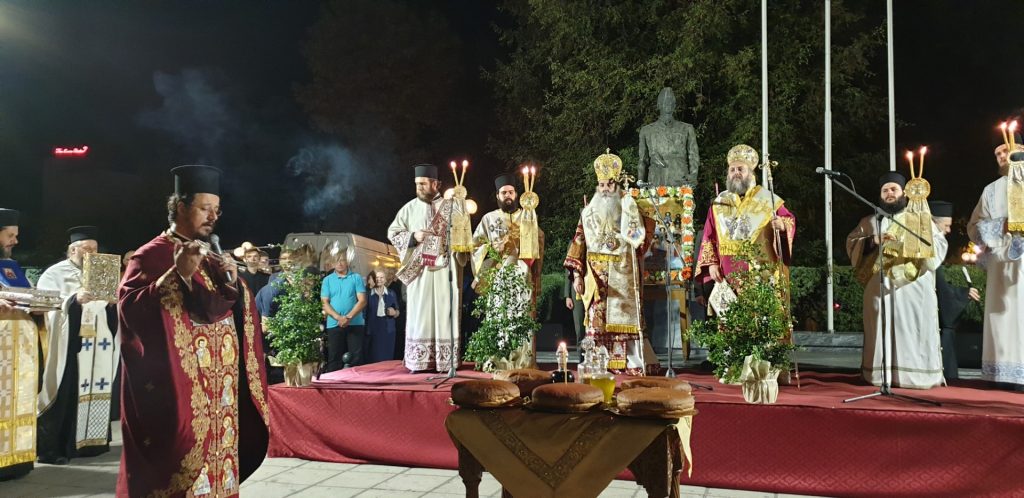 Εν συνεχεία εν πομπή κλήρος και λαός κατευθύνθηκαν στην κεντρική πλατεία όπου και τελέστηκε η Ακολουθία της Αρτοκλασίας και ο άγιος Πειραιώς ομίλησε καταλλήλως στα πλήθη.