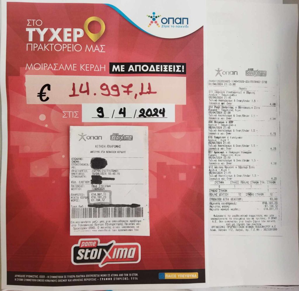 Όπως καταγράφει το trikalavoice.gr Τρικαλινός έπαιξε 3 € στο “Στοίχημα” ποντάροντας σε απίθανους συνδυασμούς αποτελεσμάτων και… του βγήκε!!!… Πήρε 14.997 €. Το τυχερό δελτίο παίχτηκε στο πρακτορείο ΟΠΑΠ στην Καραϊσκάκη 63. Τέτοια να ‘χουμε…
