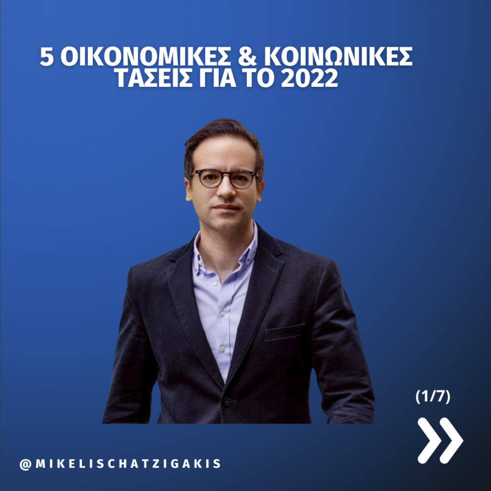 Πέντε βασικές οικονομικές και κοινωνικές τάσεις “βλέπει” για το νέο έτος ο Μικέλης Χατζηγάκης.
