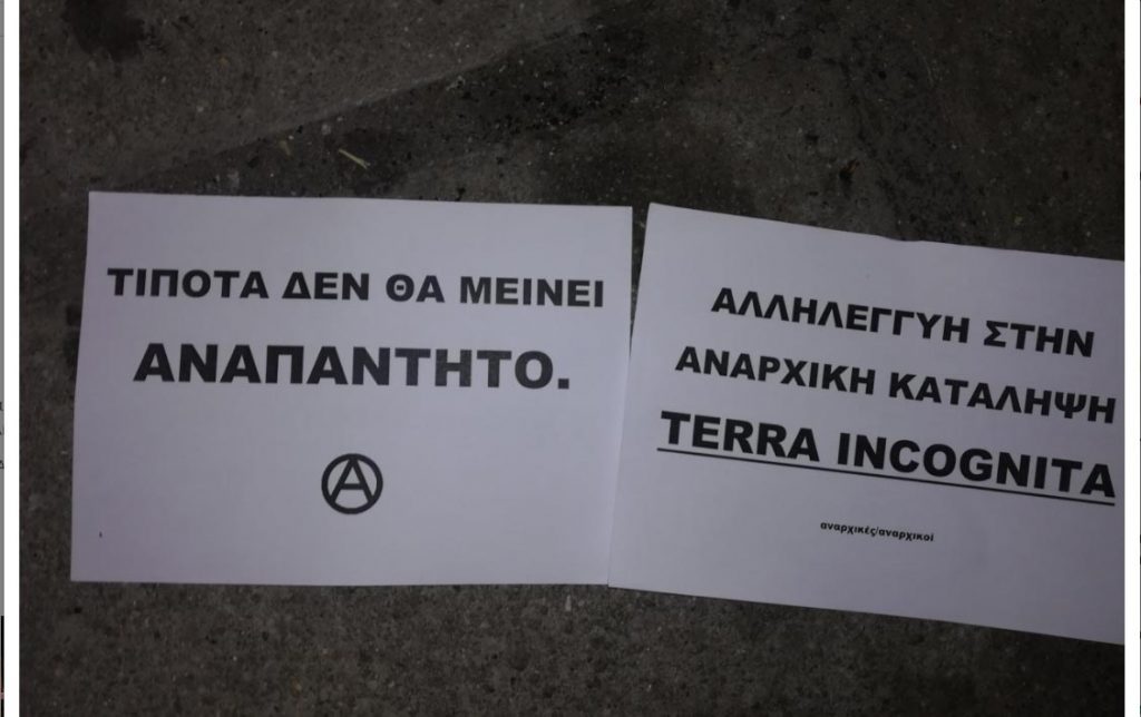 Ως πράξη αλληλεγγύης για την κατάληψη Terra Incognita έγινε η δράση τα ξημερώματα στα Τρίκαλα.