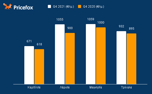 Γράφημα με τιμές ακινήτων ανά τετραγωνικό μέτρο στη Θεσσαλία