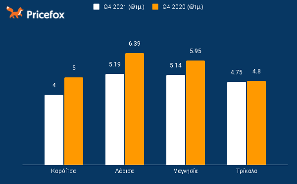 Γράφημα με τιμές ενοικίων ανά τετραγωνικό μέτρο στη Θεσσαλία