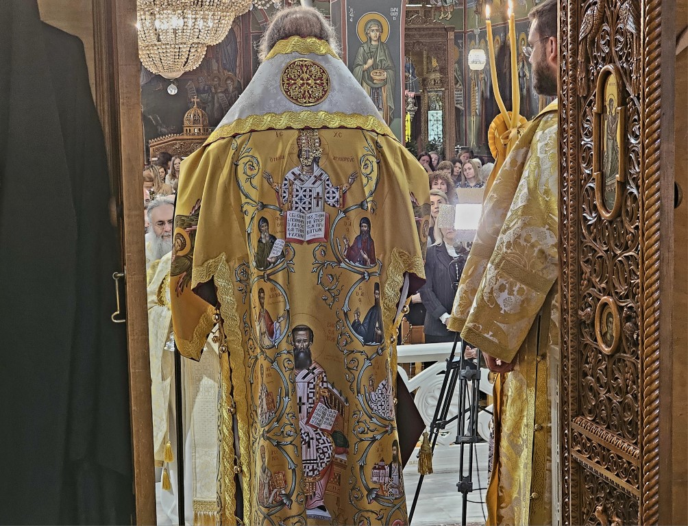 Όπως κατέγραψε το trikalavoice.gr ειδικά για την εορτή πάντων των εν Τρίκκη Αγίων το Σαββατοκύριακο που μας πέρασε ο κ. Χρυσόστομος ενεδύθηκε του Αρχιερατικού Σάκου όπου τον Πολιούχο μας Άγιο Βησσαρίωνα πλαισιώνουν οι Άγιοι Φιλόθεος εκ Σλατένης, Νικόλαος εκ Μετσόβου, Μάρκος Λαρίσης, Αρσένιος Ελασσώνος, Δανιήλ εκ Τσιοτίου, Εφραίμ, Οικουμένιος και Νεόφυτος, οι οποίοι είτε γεννήθηκαν, είτε έζησαν τον ηγιασμένο βίο τους στα Τρίκαλα.