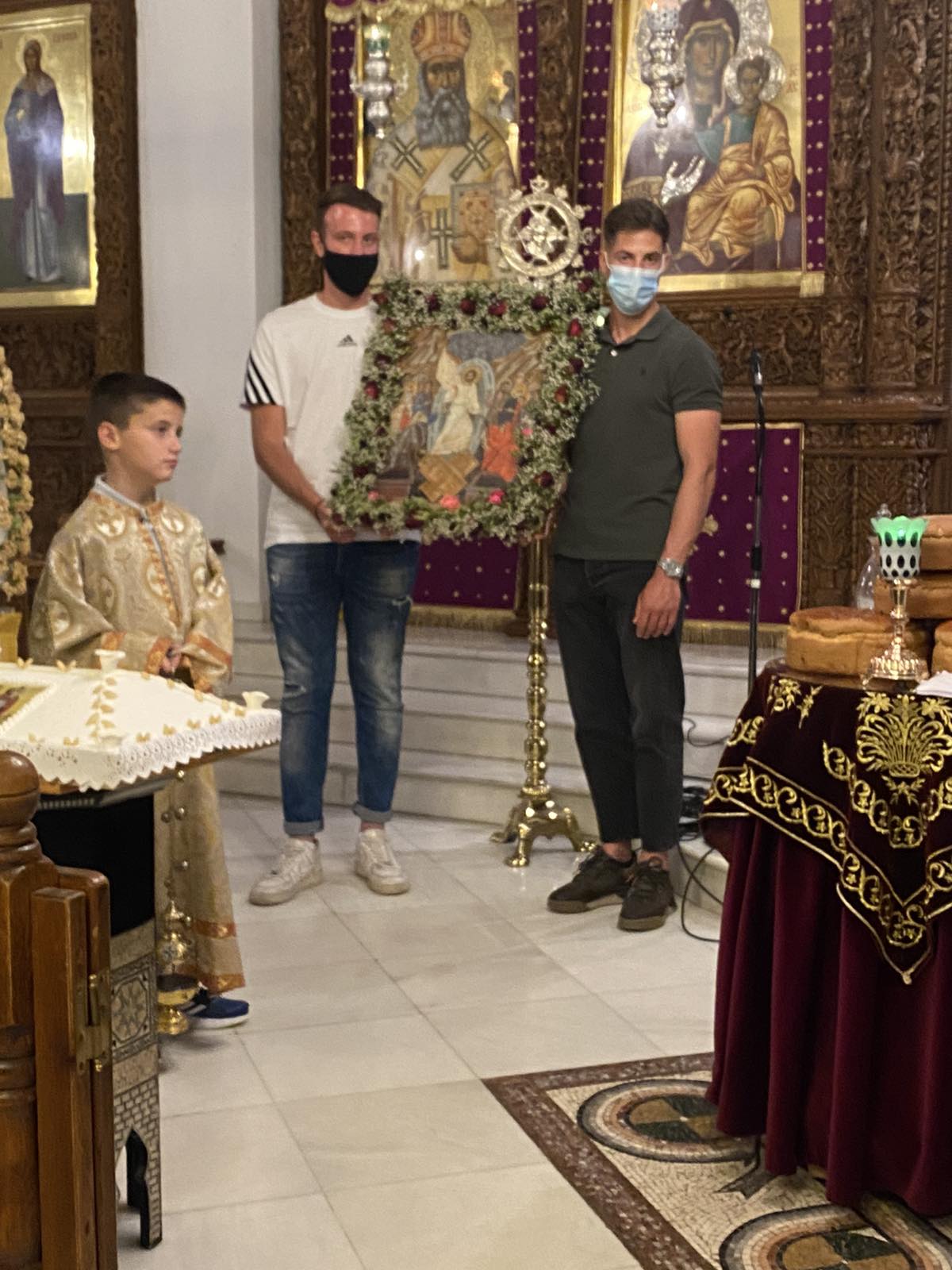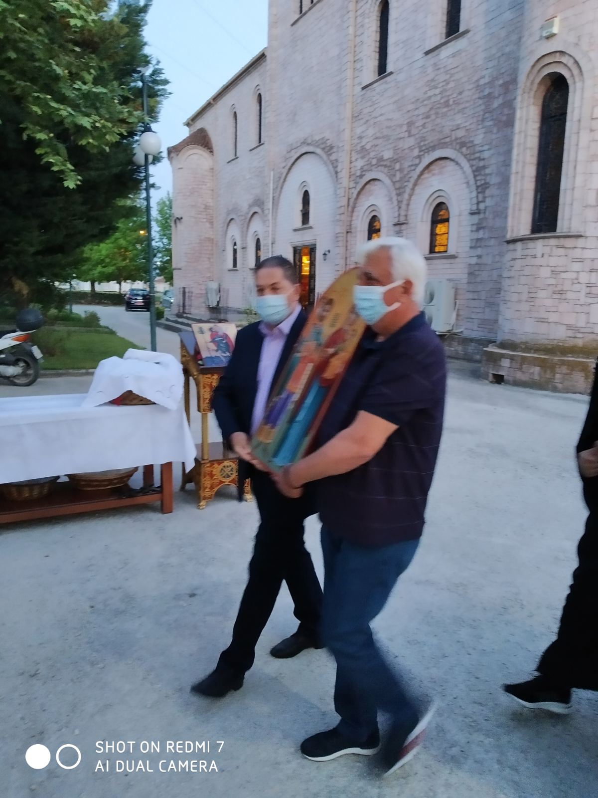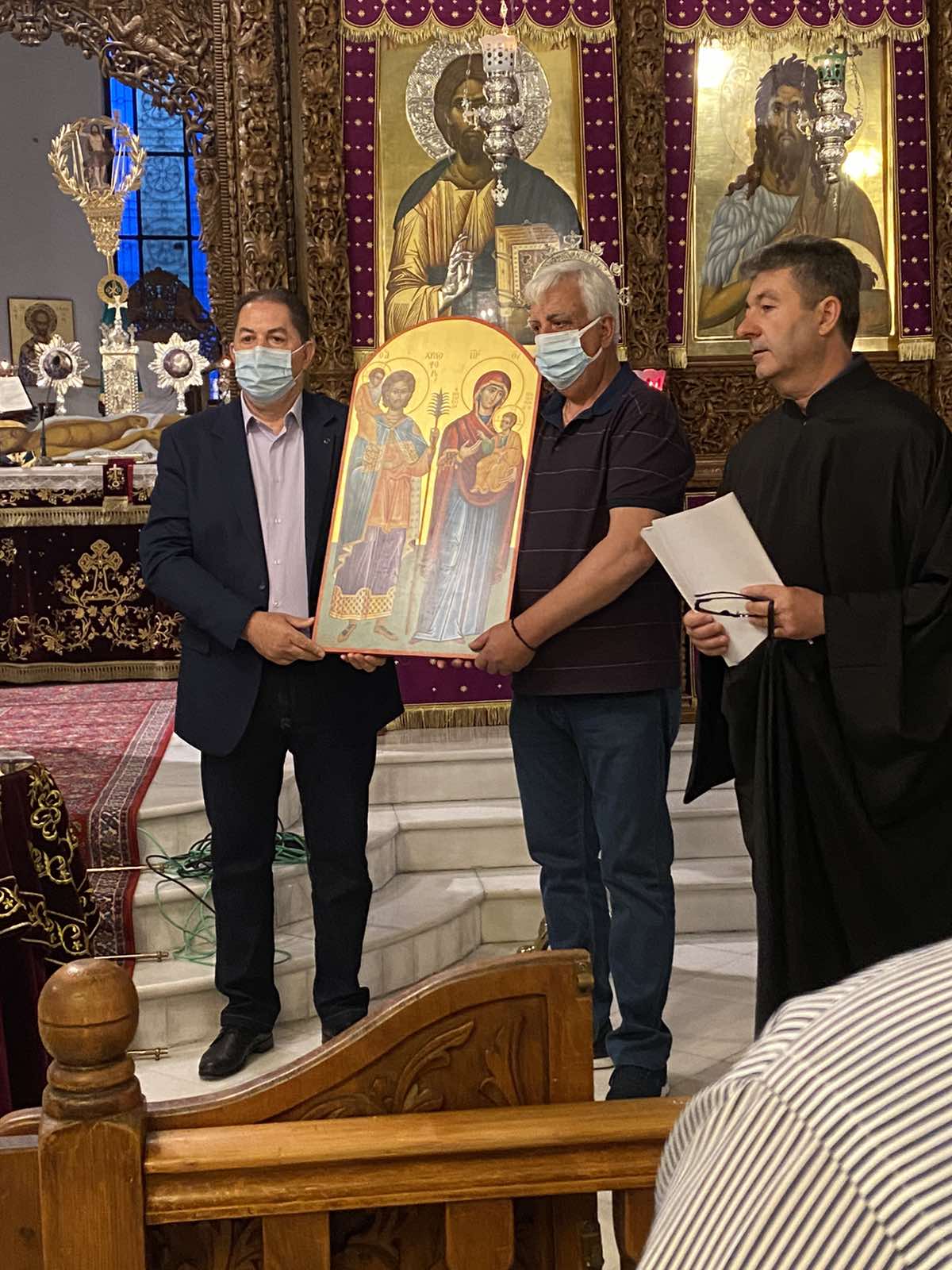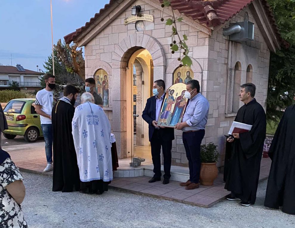Την εικόνα του Αγίου Χριστοφόρου μετέφεραν ο πρόεδρος του Αστικού ΚΤΕΛ Τάκης Ιωάννου και ο ταμίας του Δ.Σ. Στέργιος Βουτσελάς και τα μέλη του Δ.Σ. Κώστας Λιάκας και Χρήστος Κομματάς.