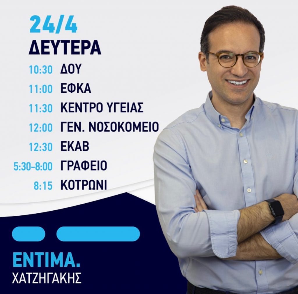 Το πρόγραμμα επισκέψεων του Μικέλη Χατζηγάκη για τη Δευτέρα 24 Απριλίου: