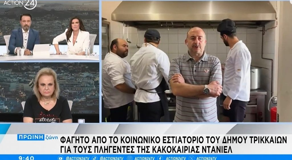 Με τη φράση «τα Τρίκαλα βοηθούν τους ανθρώπους» ολοκληρώθηκε η συνέντευξη του Δημάρχου Τρικκαίων Νίκου Σακκά στον τηλεοπτικό σταθμό Action24. Ο κ. Σακκάς φιλοξενήθηκε στην εκπομπή «Πρωινή Ζώνη» του αθηναϊκού σταθμού με παρουσιαστές τους Γιώργο Κακούση και Αννα Λιβαθυνού, από το μαγειρείο του Κοινωνικού Εστιατορίου, που βρίσκεται στο Κέντρο Κοινότητας του Δήμου Τρικκαίων.