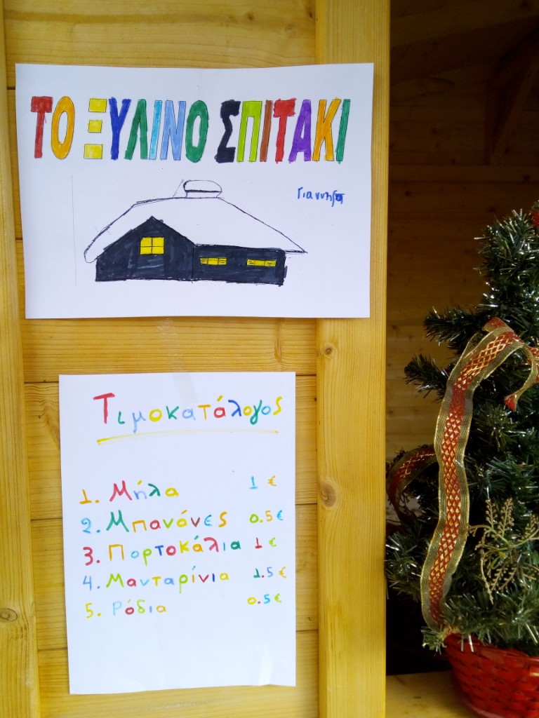 Σήμερα, 15/12/20, το ξύλινο σπιτάκι έγινε μανάβικο. Οι μαθητές/τριες του σχολείου (και των τεσσάρων Δήμων του Ν. Τρικάλων), στα πλαίσια προγράμματος Αγωγής Υγείας, έγιναν πωλητές και πελάτες. Διδάχτηκαν την αξία των χρημάτων και τη σημασία της υγιεινής διατροφής και με τη σειρά τους, αφιερώνουν: ¨Το σώμα μας έχει τη δυνατότητα να αυτοθεραπεύεται. Ύψιστη σημασία έχουν: Η διατροφή, η κίνηση, το περιβάλλον, ο τρόπος ζωής, ο τρόπος σκέψης.¨ Ιπποκράτης 460 – 377 π.Χ.