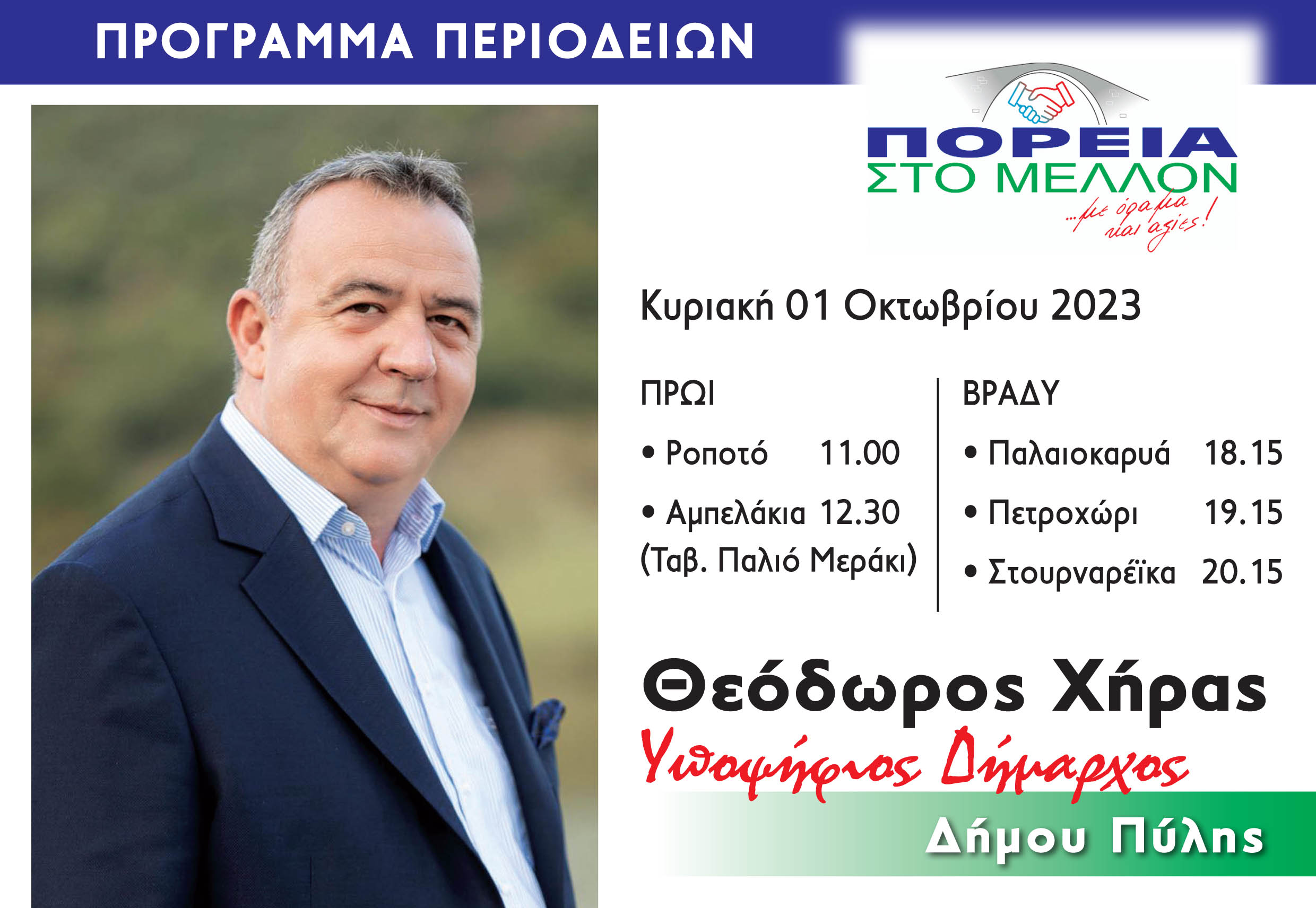 Το πρόγραμμα περιοδειών του Θοδωρή Χήρα την Κυριακή: