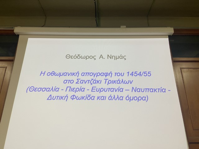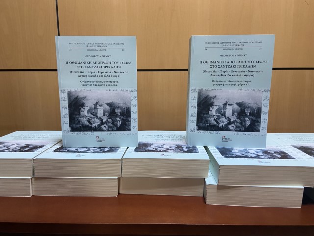 Σημαντικά ιστορικά στοιχεία για το Σαντζάκι Τρικάλων το μακρινό 1454/55, παρουσιάστηκαν σε εκδήλωση για το νέο βιβλίο του Θεόδωρου Νημά, προέδρου του Φ.Ι.ΛΟ.Σ. Σε συνδιοργάνωση με τον Δήμο Τρικκαίων, στην αίθουσα συνεδριάσεων του Δημοτικού Συμβουλίου, το απόγευμα της Πέμπτης 10 Οκτωβρίου 2024, το βιβλίο με τον τίτλο «Η Οθωμανική Απογραφή του 1454/55 στο Σαντζάκι Τρικάλων» παρουσιάστηκε στο τρικαλινό κοινό.