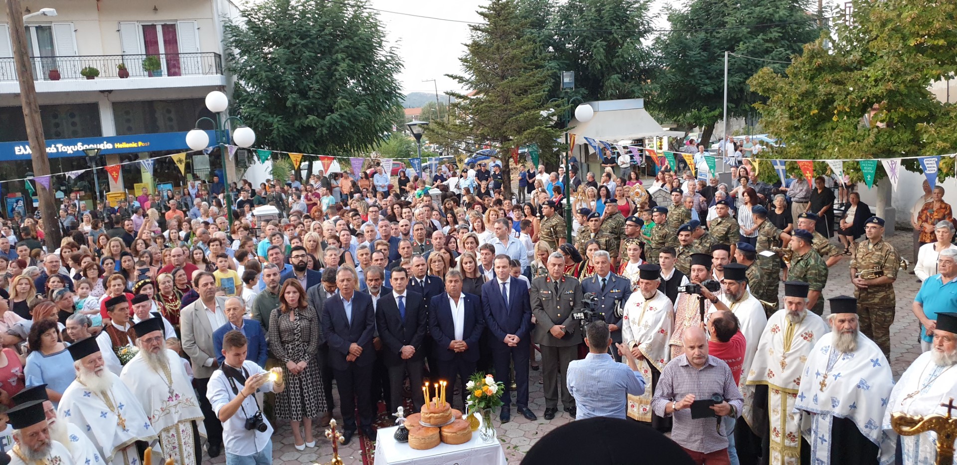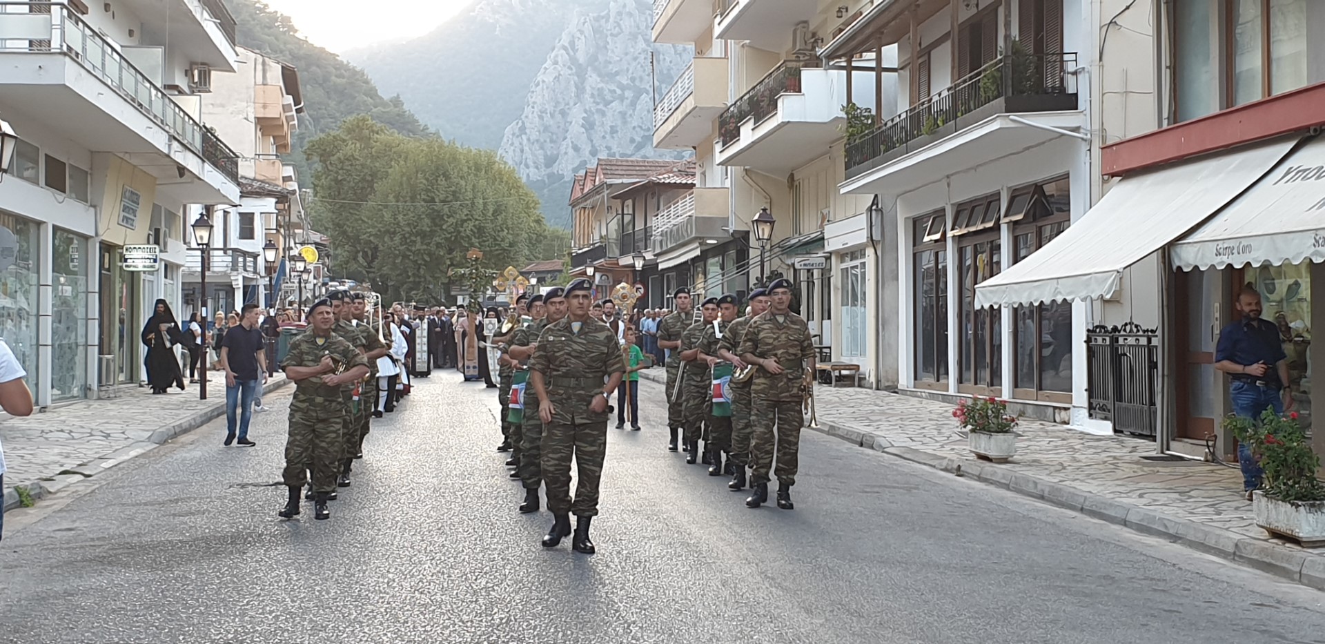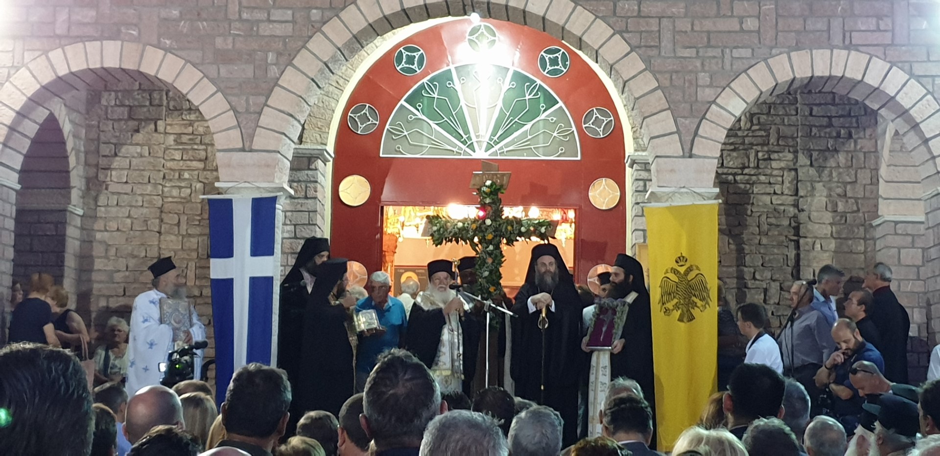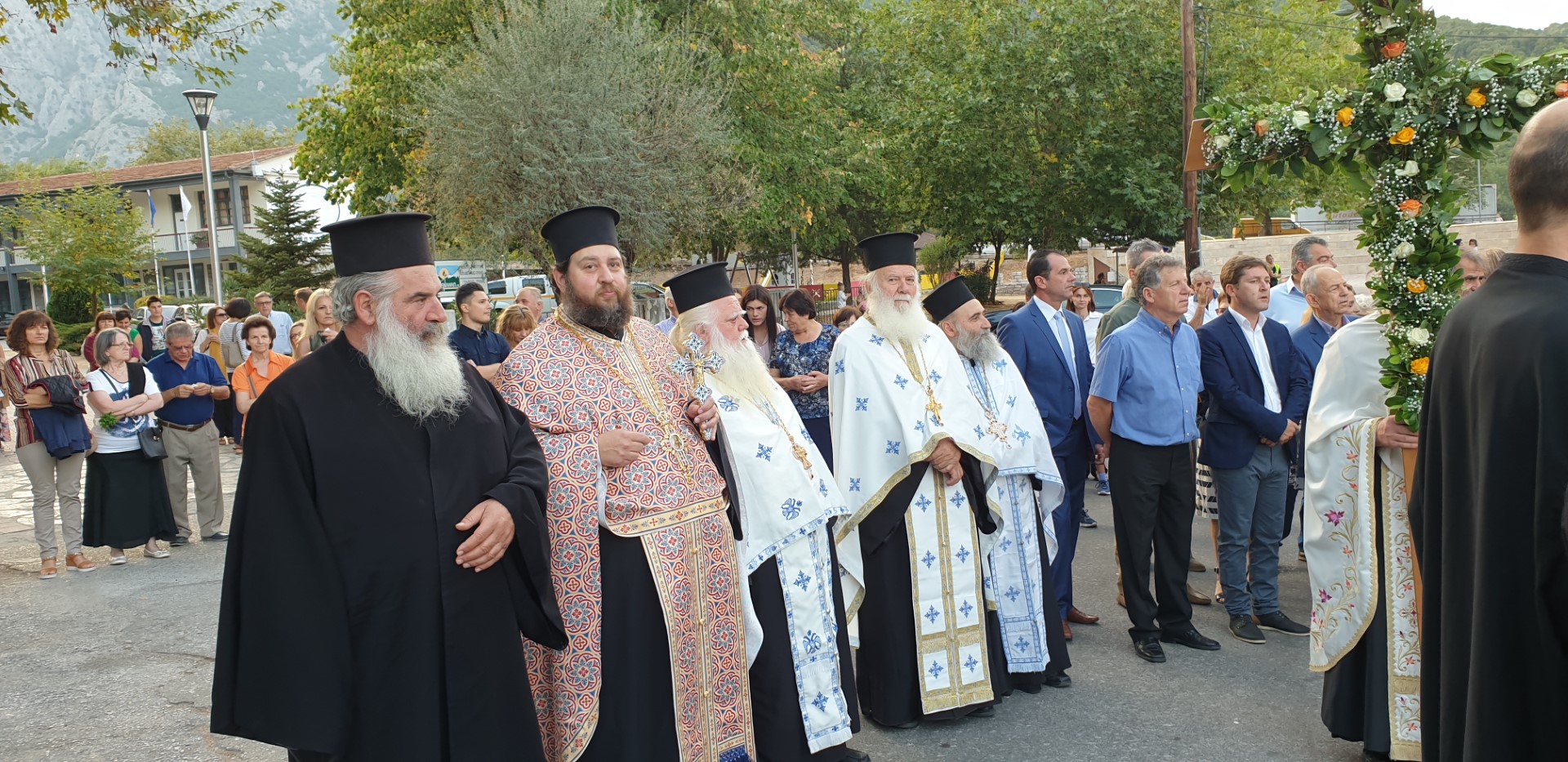 Όπως κατέγραψε το trikalavoice.gr Το απόγευμα έγινε δεκτή η Τιμία Κάρα του Αγίου εκ της Ιεράς Μονής Δουσίκου και αμέσως μετά αφίχθηκε το απότμημα το Τιμίου Ξύλου εκ της Αγίας πόλης των Ιεροσολύμων. Το κόμισε δε ο Μητροπολίτης Ναζαρέτ Κυριακός και έγινε δεκτό από κλήρο και λαό υπό του Ποιμενάρχου ημών κ. Χρυσοστόμου.