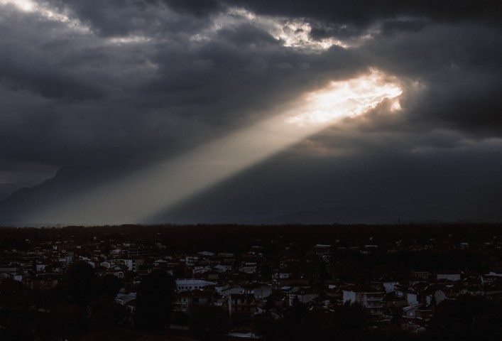 Μέσα από τον βαριά φορτωμένο με σύννεφα ουρανό ξεπροβάλλουν αχτίδες φωτός, δίνοντας ελπίδα και προοπτική. Την ονόμασε τη φωτογραφία του αυτή “Το χέρι του Θεού” και απόλυτο δίκιο είχε!!!…