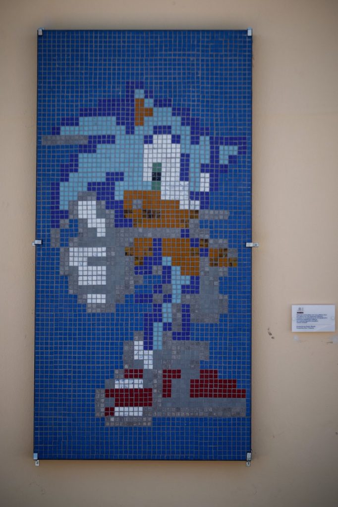 Ο γνωστός σε όλους μας μπλε σκατζόχοιρος βρήκε το δρόμο του για τον τοίχο του σχολείου με την βοήθεια και την συνεργασία όλων των μαθητών και της καλλιτεχνικής ομάδας. Βήμα βήμα ψηφίδα ψηφίδα έφτασε στην τελική του μορφή. Με πίστη στην τεχνική τους στην ιδέα καί στο ύφος τους οι ψηφοθετες και η εικαστικός ολοκλήρωσαν για 2η συνεχόμενη χρονιά μια άριστη συνεργασία και επικύρωσαν τον εποικοδομητικό διάλογο ανάμεσα στην τέχνη και την εκπαίδευση. Η ίδια εικαστική ομάδα είχε αναλάβει και την ολοκλήρωση του ψηφιδωτού που κοσμεί την παιδιατρική πτέρυγα του ΓΝΤ….