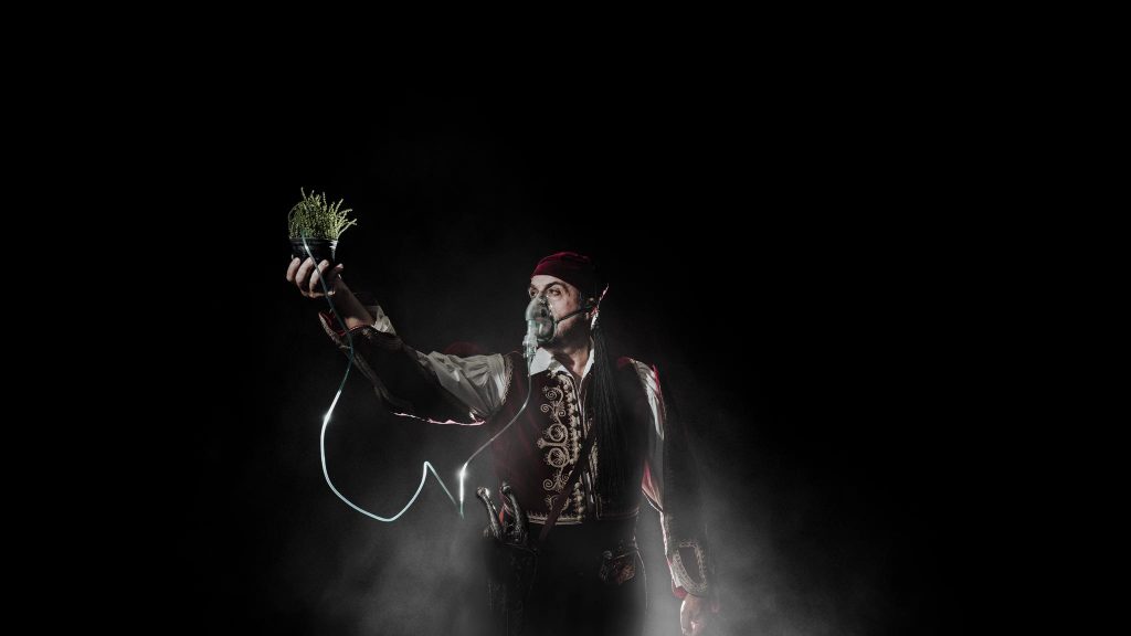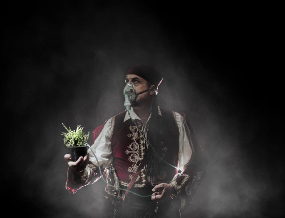 Με τον Νίκο Βερεντζιώτη, τον επικεφαλής των φουστανελοφόρων των Τρικάλων, ενδεδυμένο με την παραδοσιακή φορεσιά και μια μάσκα οξυγόνου, να κρατάει ένα φυτό το οποίο πιθανόν στο μέλλον να είμαι είναι αρκετό για να μας δώσει το… οξυγόνο που χρειαζόμαστε για να ζήσουμε, να μας αφήνει να αναπνέουμε!…