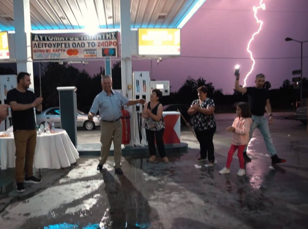 Ήταν λίγα λεπτά μετά τα μεσάνυχτα όταν και ξέσπασε πρωτοφανής καταιγίδα συνοδευόμενη από χαλάζι. Το γλέντι δε σταμάτησε, συνέχισε σε πείσμα του καιρού. Κι ενώ ο Δημήτρης Ανυφαντής, που παντρεύει το γιο του Βαγγέλη, έφερνε τις στροφές υπό τους ήχους του “ριγέ σακάκι του διπλοσταυροκουμπωτού” έπεσε ο κεραυνός!!!… Δείτε το βιντεάκι του trikalavoice.gr: