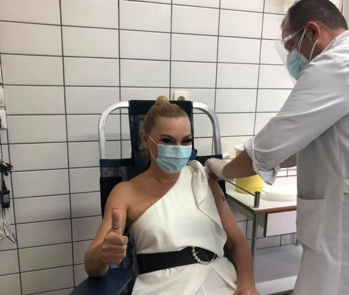 Στη φωτό παραπάνω διακρίνεται η χειρουργός μαστού του Νοσοκομείου Τρικάλων Μαρία Καναρά η οποία εμβολιάστηκε σήμερα το πρωί.