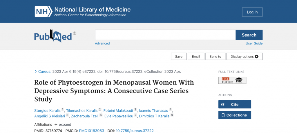 Νέα εργασία, με θεραπευτική πρόταση, από γνωστή Τρικαλινή ερευνητική ομάδα επιλέχθηκε και αναρτήθηκε στην Αμερικανική Εθνική Ιατρική Βιβλιοθήκη (PubMed) με τίτλο «Role of Phytoestrogen in Menopausal Women With Depressive Symptoms: A Consecutive Case».