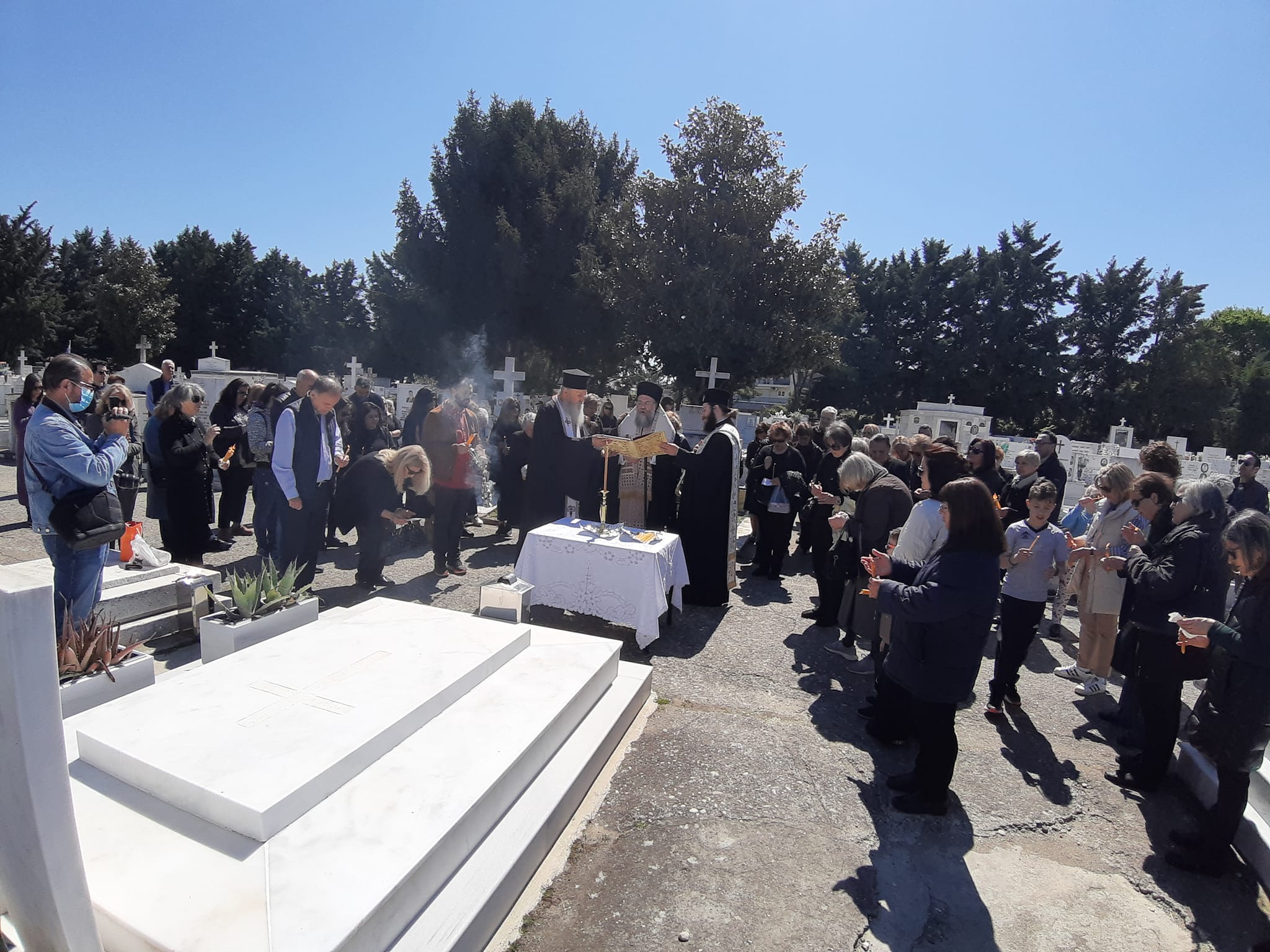 Ιερό καθήκον του Μητροπολίτου Τρίκκης, Γαρδικίου και Πύλης Χρυσοστόμου, ο οποίος το πρωί της Μεγάλης Πέμπτης μετέβη στα Κοιμητήρια της πόλης, αλλά και στον Ι.Ν. Αγίου Βησσαρίωνα, τελώντας τρισάγια στη μνήμη των προκατόχων του Αρχιερέων.