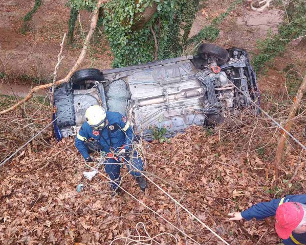Σε μικρό γκρεμό λίγο πριν τη τοξωτή γέφυρα της Πύλης βρέθηκε το πρωί της Κυριακής αυτοκίνητο που ξέφυγε της πορείας του λόγω ολισθηρότητας του δρόμου.