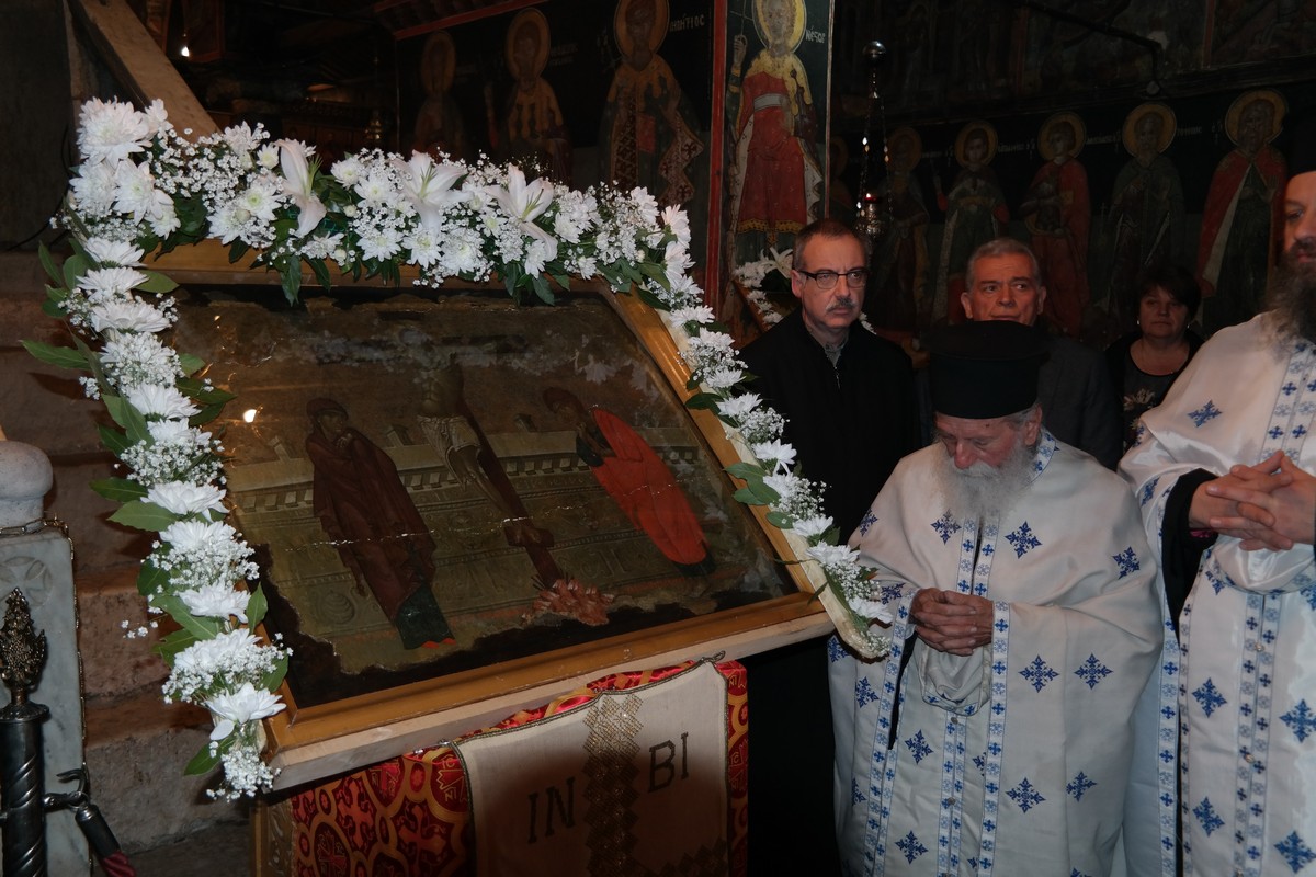 Με την ευλογία του Μητροπολίτου Σταγών και Μετεώρων Θεοκλήτου πραγματοποιήθηκε το Σάββατο η υποδοχή της Ι.Εικόνος της Σταυρώσεως, η οποία φυλλάσεται στην Ι.Μ.Βαρλαάμ. Την Εικόνα υποδέχτηκε ο Πρωτοσύγκελλος της Μητροπόλεως, Αρχιμανδρίτης Νήφων Καψάλης, ενώ αμέσως μετά κλήρος και πιστοί κατευθύνθηκαν στο μέσο του Ι.Ναού και έπειτα από μικρή δέηση ξεκίνησε η Ακολουθία του Εσπερινού.