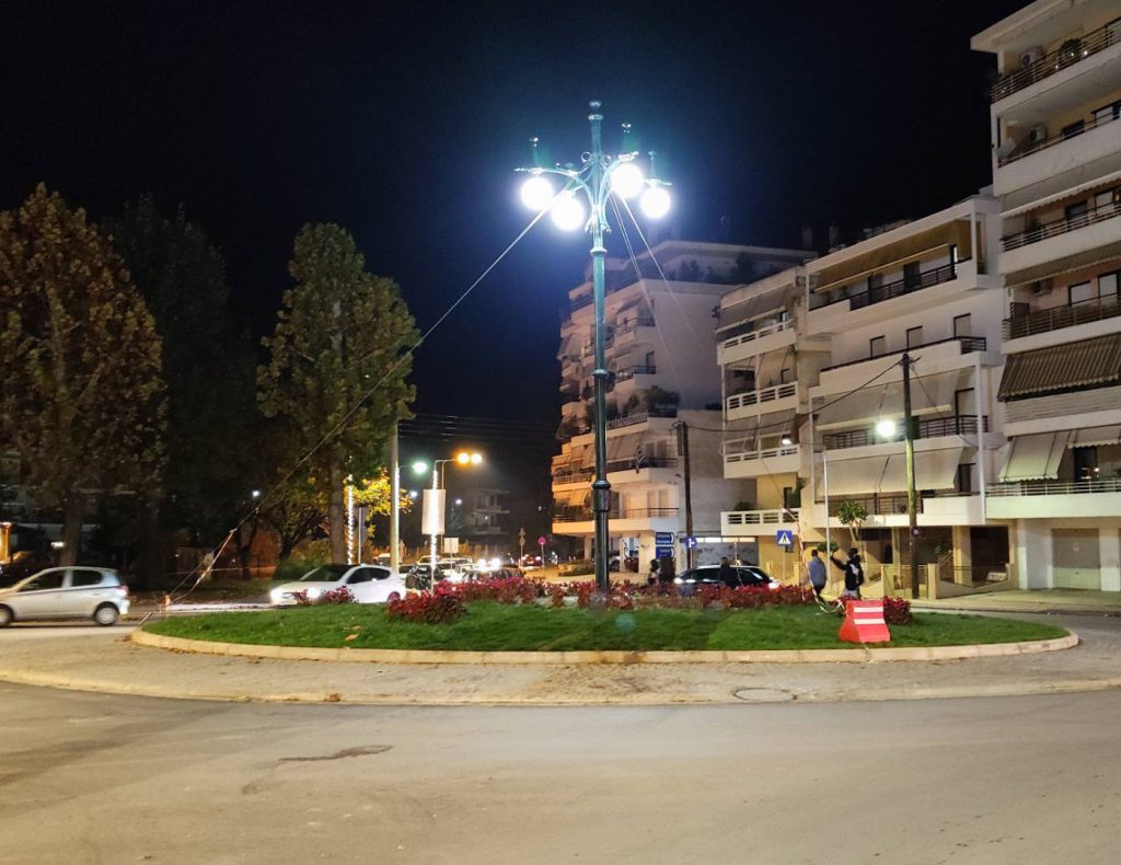 Φωταγωγήθηκε χθες βράδυ ο κόμβος του ΟΣΕ και της οδού Ελευθερίας στα Τρίκαλα με φανοστάτες ιδιαίτερης τεχνικής και… ιστορίας.