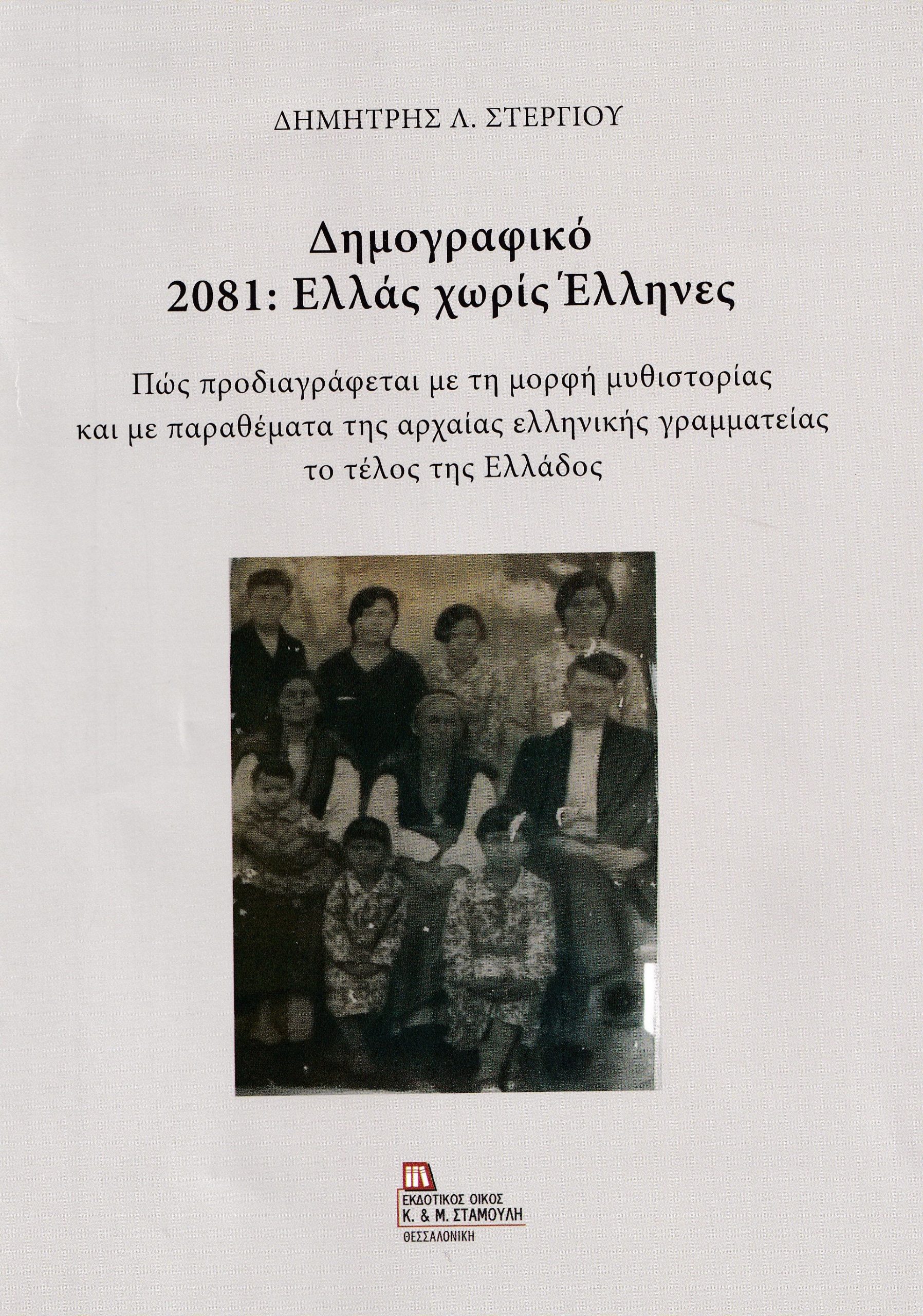 Από τον Εκδοτικό Οίκο Κ & Μ Σταμούλη μόλις κυκλοφόρησε το νέο οικονομικό-κοινωνικό βιβλίο του δημοσιογράφου – συγγραφέα Δημήτρη Στεργίου με τίτλο «Δημογραφικό, 2081: Ελλάς χωρίς Έλληνες».