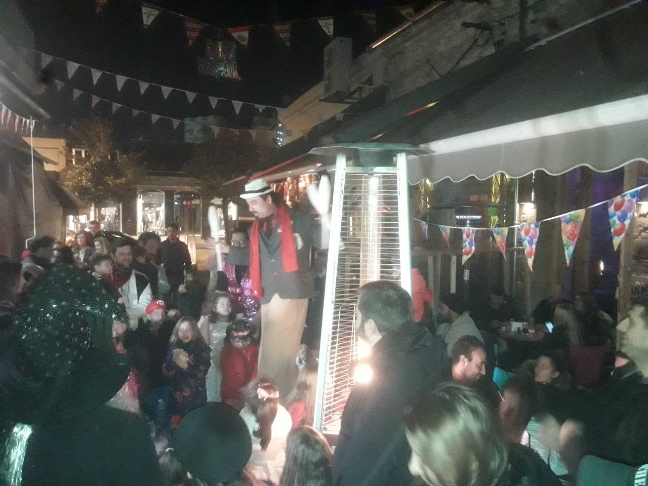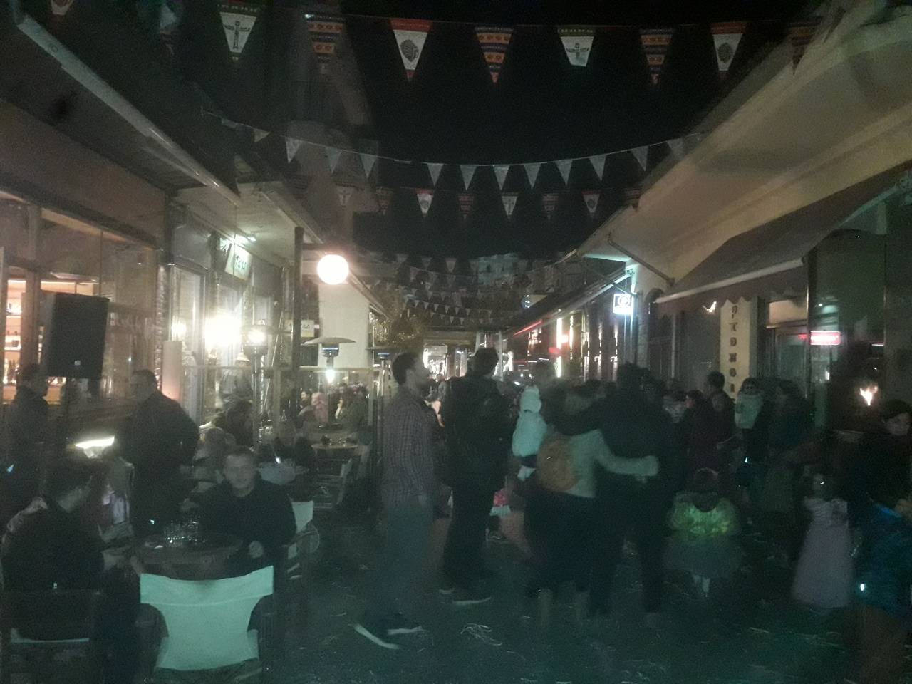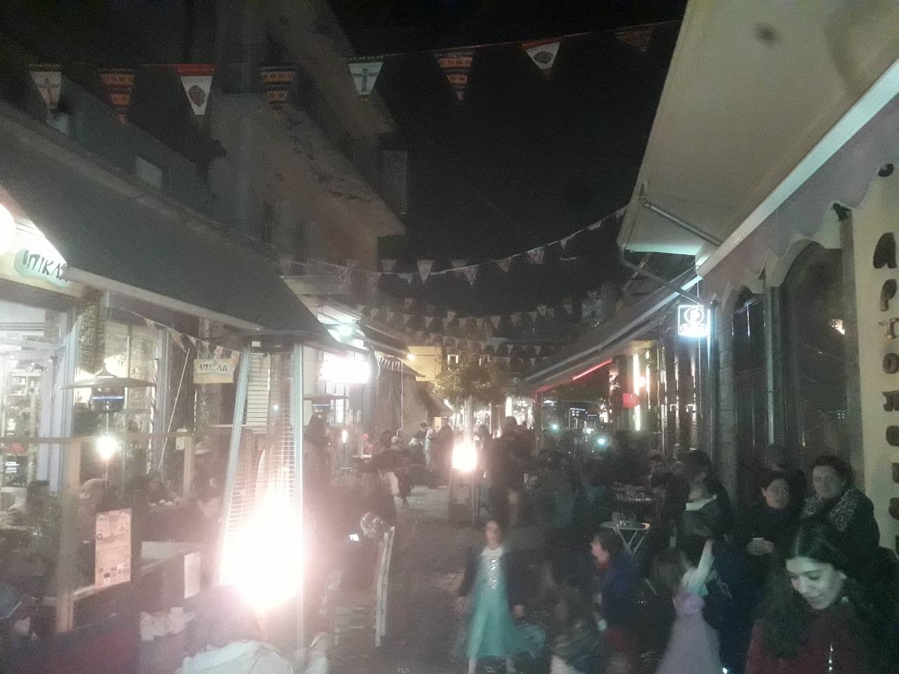Από νωρίς το απόγευμα στη γειτονιά που φιλοξενεί τις παραδοσιακές ταβέρνες της πόλης, έφτασαν… μασκαράδες, οι οποίοι σκορπάνε κέφι, τραγούδι και χορό!… Πειράγματα, σκουντήματα, βαφές στο πρόσωπο.. Στο ρυθμό του καρναβαλιού…