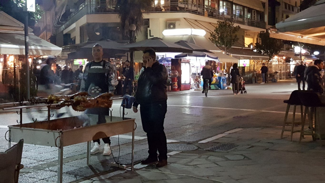 Το κλου αυτής της, υποτονικής σε σχέση με περασμένα χρόνια, Τσικνοπέμπτης ήταν τα… αρνιά που σουβλίστηκαν και ψήθηκαν μπροστά στο FRAME, στην καρδιά του πεζόδρομου της Ασκληπιού.