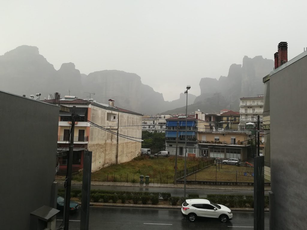 Η… κλασσική πια απογευματινή βροχή, τη φορά αυτή χτύπησε την Καλαμπάκα. Τα Μετέωρα τυλίχθηκαν σε ένα πέπλο ομίχλης και η βροχή πέφτει στη πόλη της Καλαμπάκας, σαν… χειμώνας!!!…