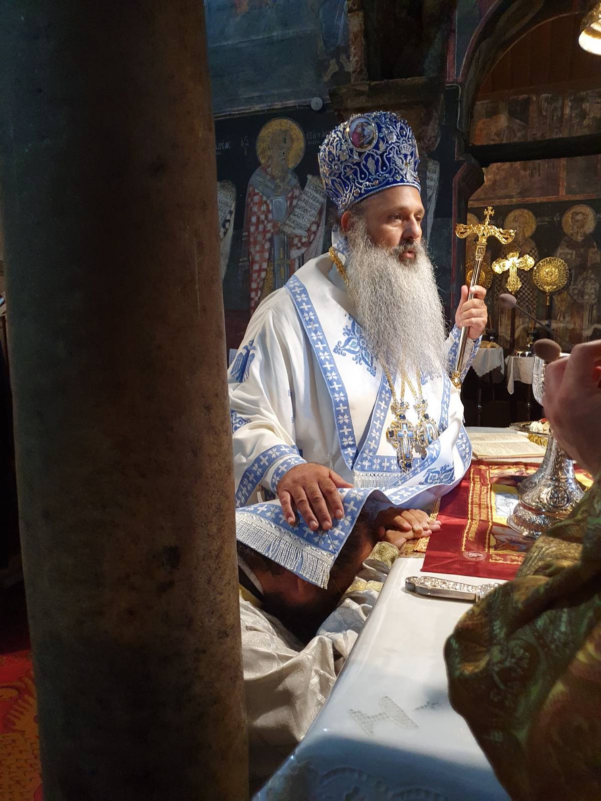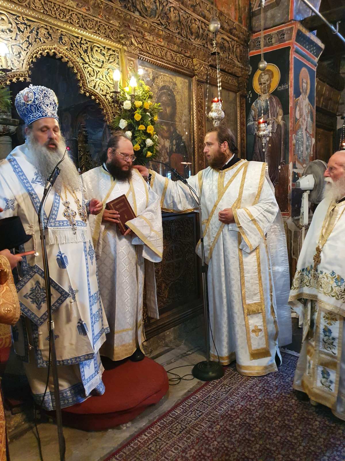 Κατά την διάρκεια της θείας Λειτουργίας, τέλεσε την εις Διάκονον χειροτονία του μοναχού Διονυσίου Μητσάκη. Ο σεπτός μας Ποιμενάρχης, στον πατρικό του λόγο προς τον νέο Διάκονο, αναφέρθηκε στην αξία που έχει η ιερωσύνη για τον άνθρωπο αλλά και ότι αυτή αποτελεί διακονία και όχι εξουσία κοσμική. Παρότρυνε τον χειροτονούμενο να υπηρετήσει με ταπείνωση την Εκκλησία του Χριστού, αισθανόμενος την ευθύνη την οποία καλείται να αναλάβει. Επίσης, τον κάλεσε να είναι ευγνώμων προς τον Καθηγούμενο της ιεράς Μονής Βαρλαάμ Αρχιμανδρίτη Ισίδωρο αλλά και σε όλους τους Πατέρες της Μετεωρίτικης Μονής από την οποία προέρχεται και στην οποία ασκήθηκε για πολλά χρόνια.